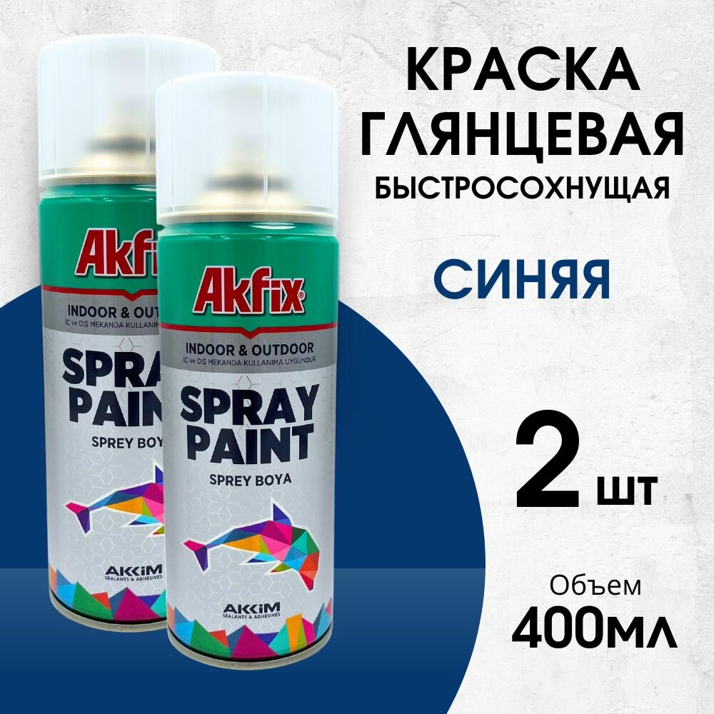 Акриловая аэрозольная краска Akfix Spray Paint, 400 мл, RAL 5017, синяя, 2 штуки информация: