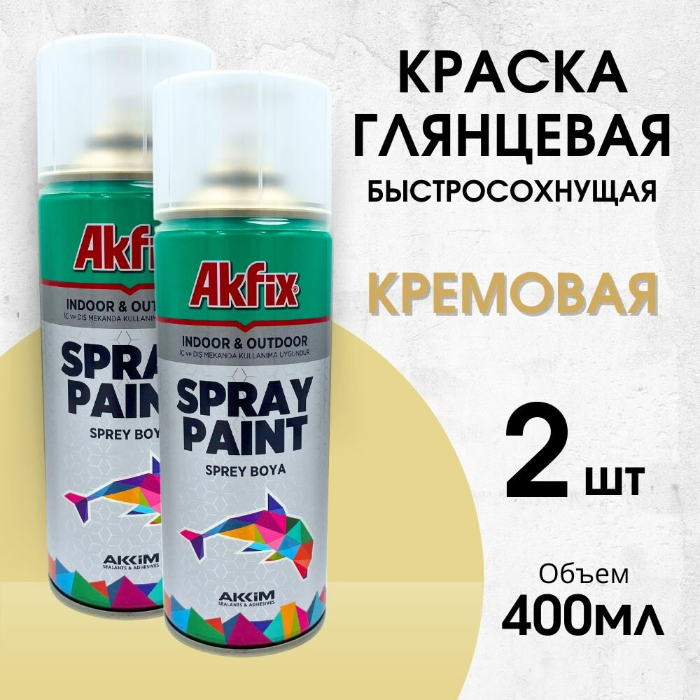 Акриловая аэрозольная краска Akfix Spray Paint, 400 мл, RAL 1015, кремовая, 2 шт информация: