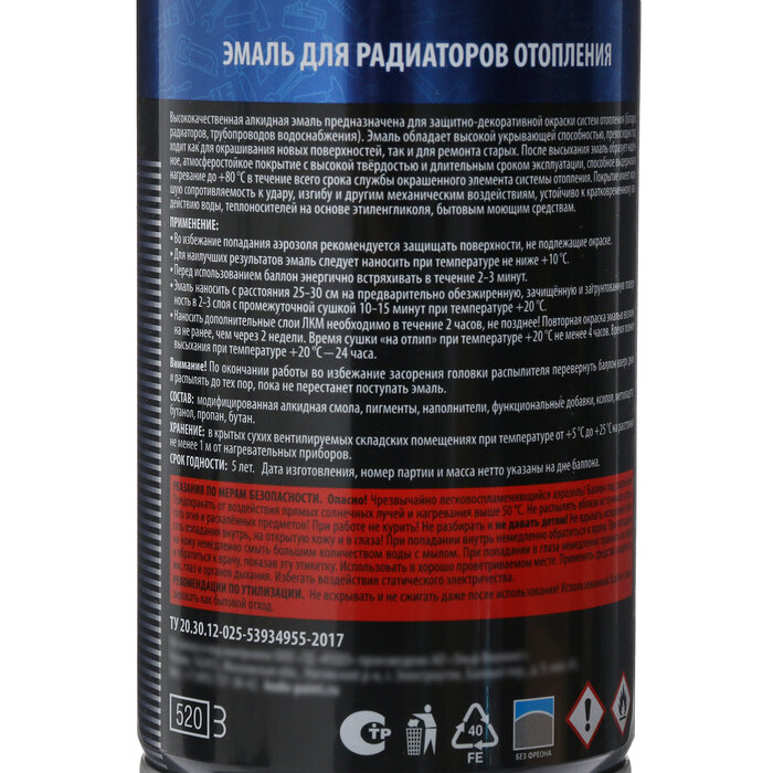 Эмаль для радиаторов отопления KUDO, белая матовая, 520 мл KU-5102 информация: