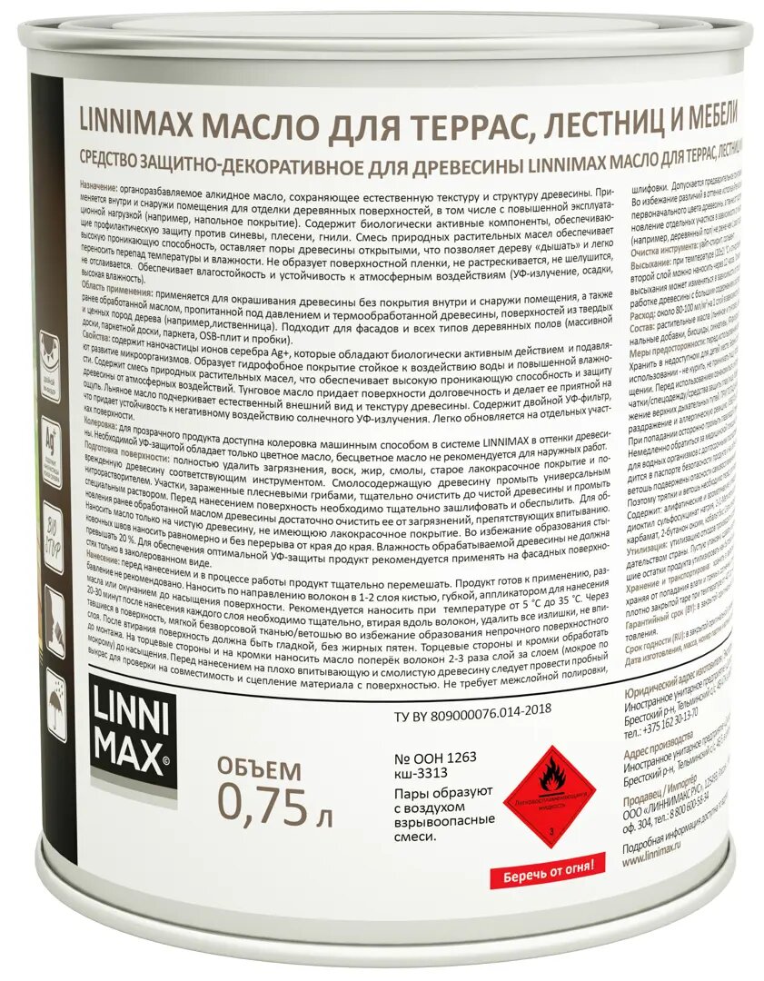 Масло для террас лестниц и мебели Linnimax цвет прозрачный 0.75 л 1 499 ₽