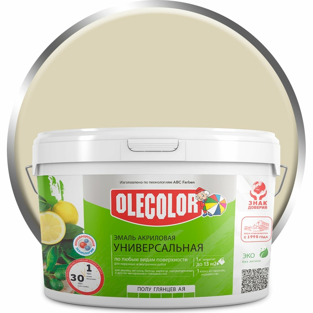 Olecolor Эмаль акриловая полуглянцевая цвет слоновая кость (2 кг) 4300 4300008766 информация: