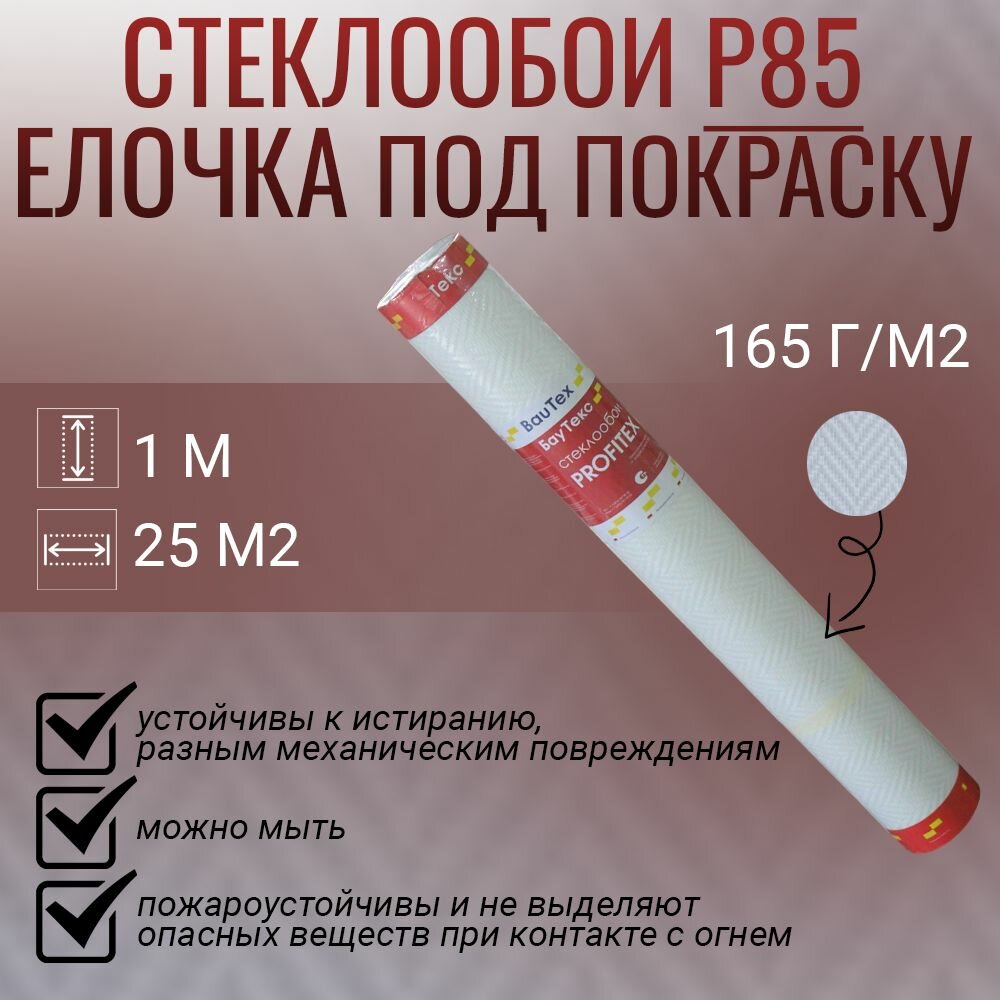 Стеклотканевые обои (стеклообои) под покраску BauTex Profitex Р 85 Елочка средняя 25м2 165г/м2 информация: