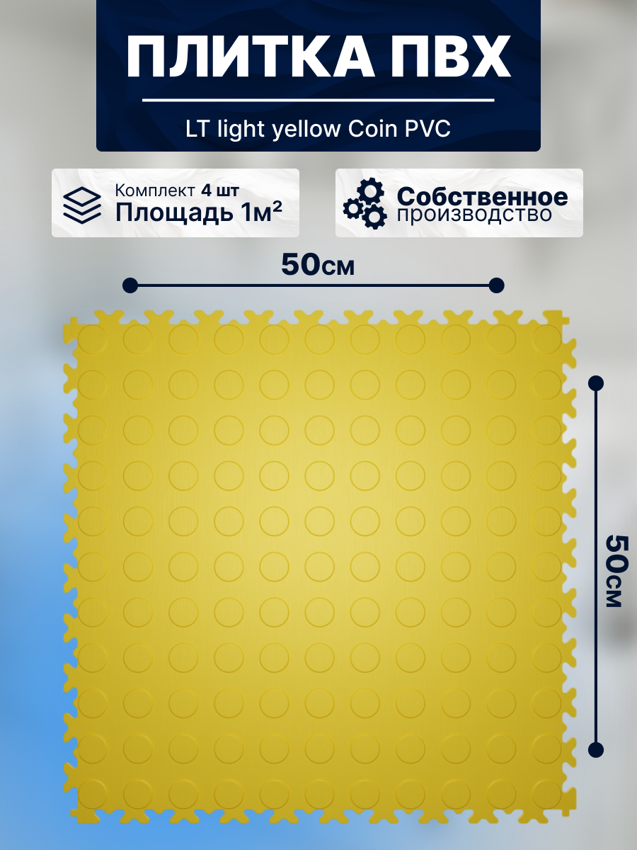 Плитка ПВХ модульная на пол LT light yellow Coin PVC 500X500X5мм 43 класс информация: