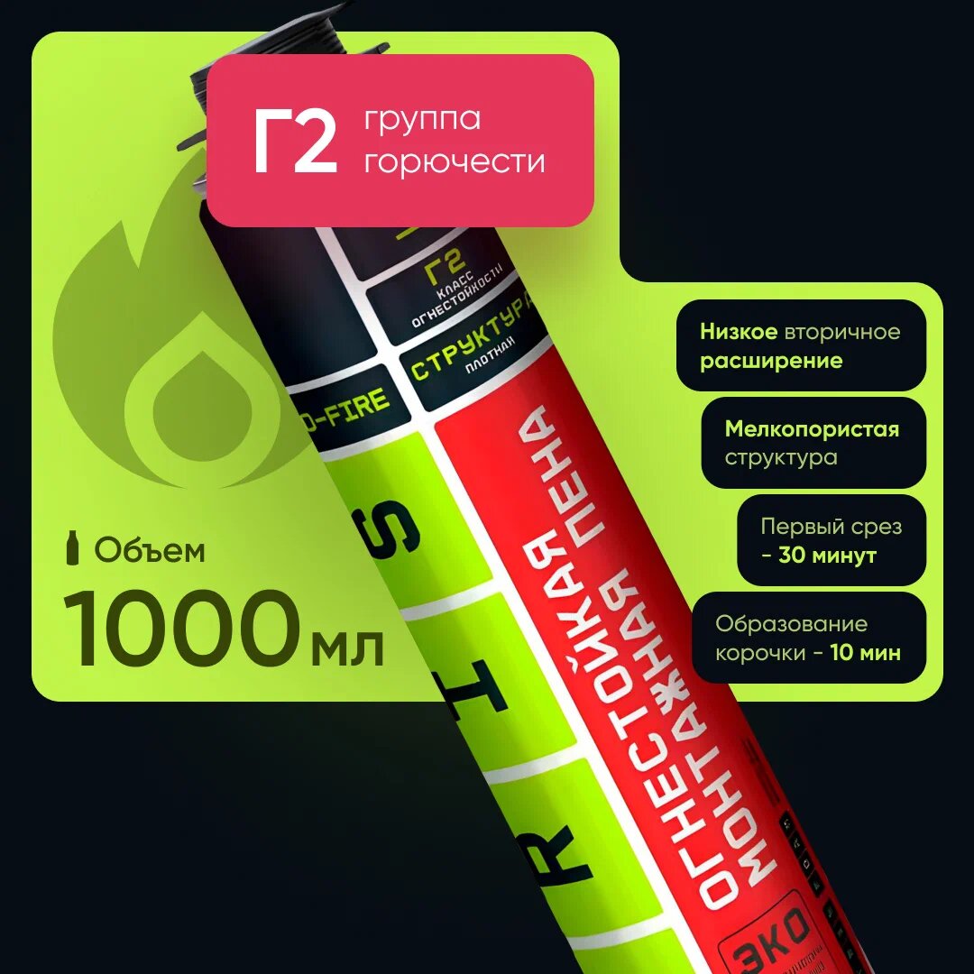 Профессиональная монтажная пена огнестойкая PRO-FIRE / выход до 60 литров готового продукта / TRIS 1000 мл информация:
