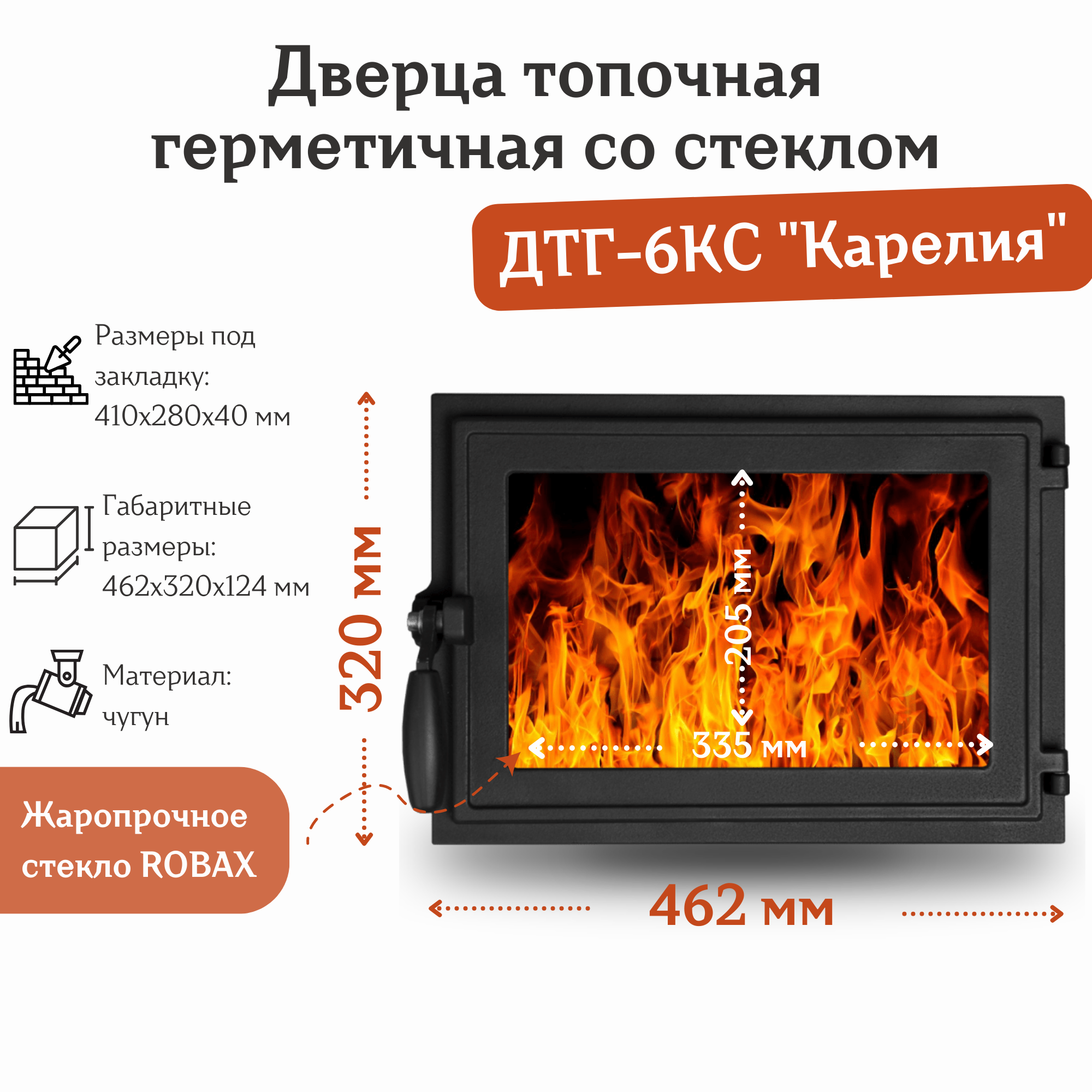 Дверца топочная герметичная со стеклом ДТГ-6КС "Карелия" (462*320*124 мм) информация: