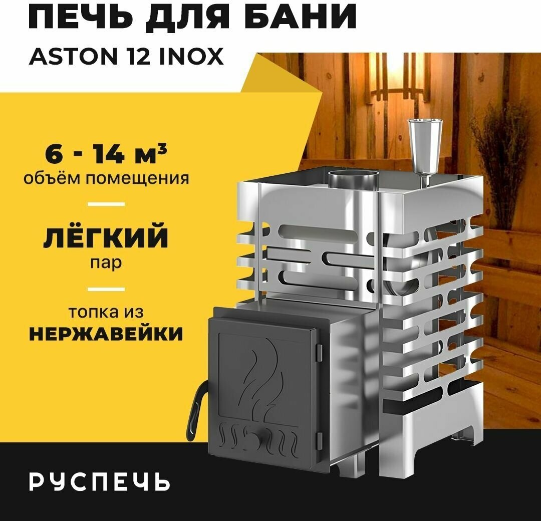 Печь для бани ASTON 12 INOX стекло 55 750 ₽