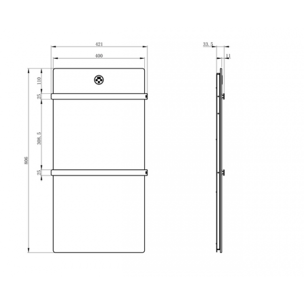 Полотенцесушитель Водяной узкий с полкой Di Kron, модель Premium-T 800х400 боковое подключение 50 см слева угловое