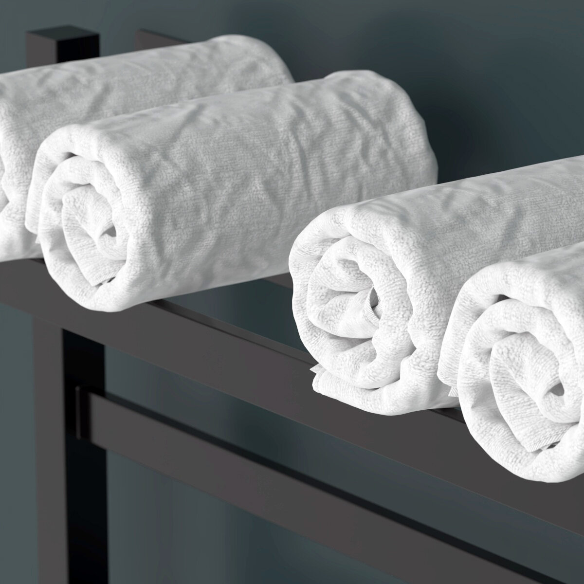 10 цен на Водяной полотенцесушитель Onix, модель Moon Plus Black 700x800, лесенка с полкой с нижним подключением, черный, полный комплект