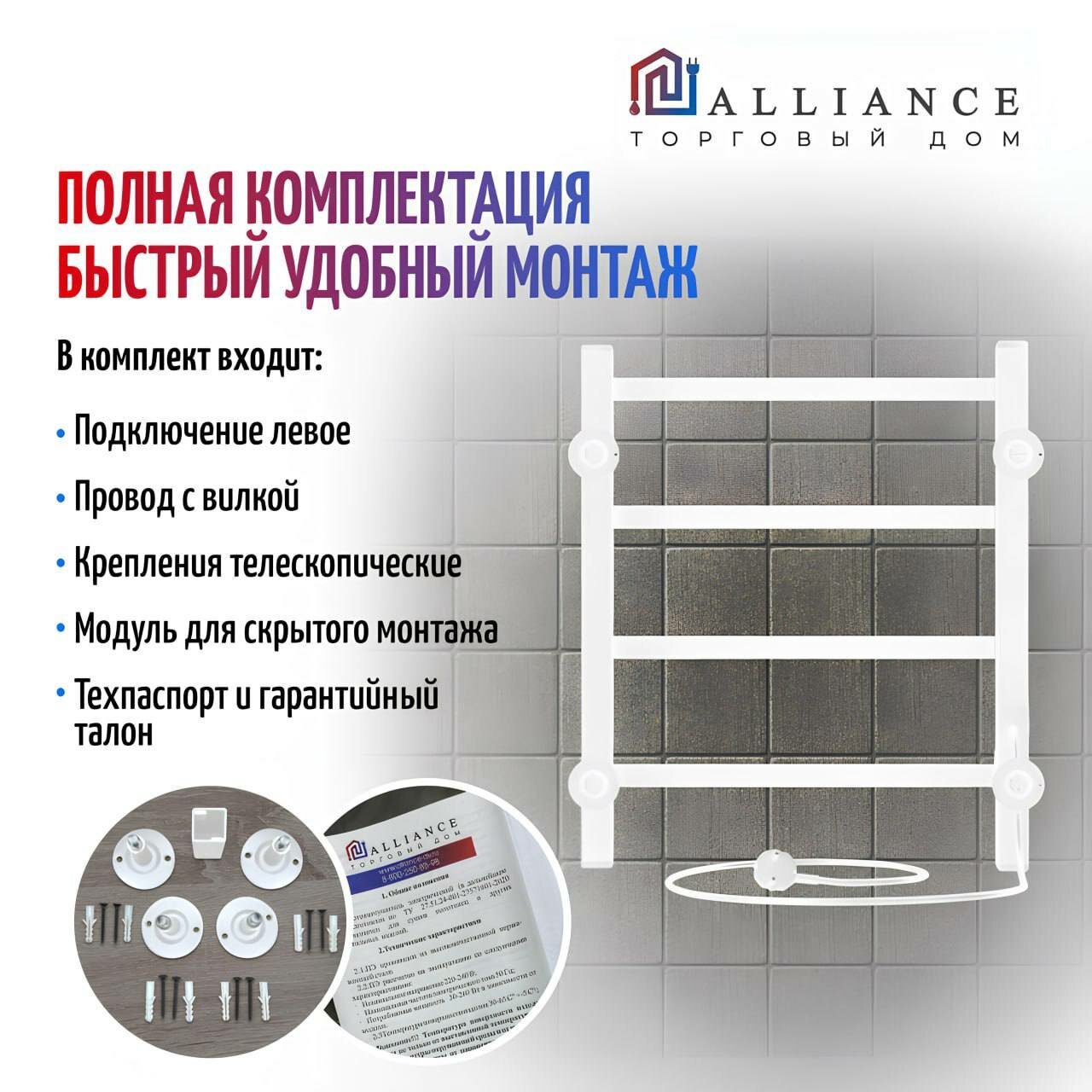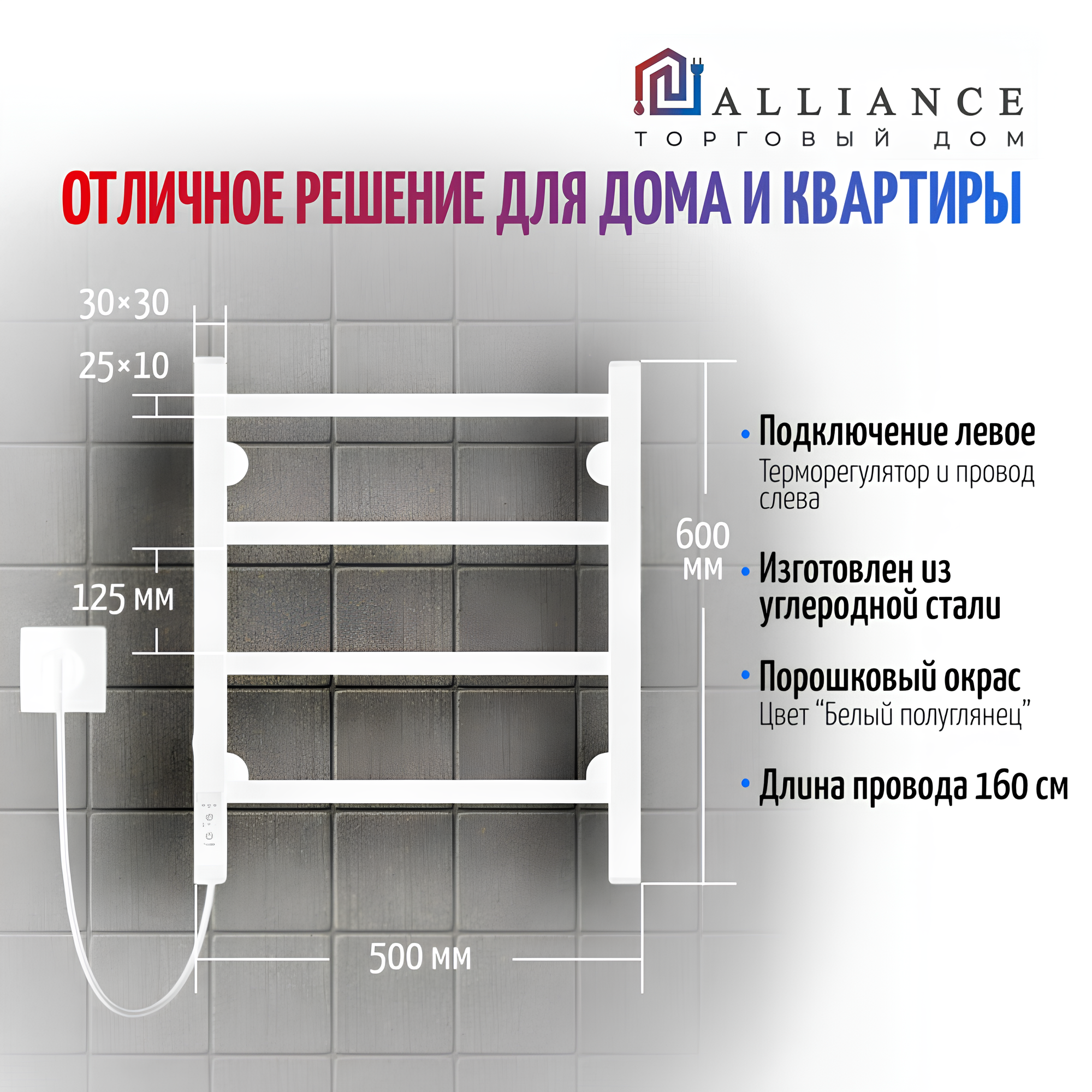 Полотенцесушитель Электрический 500мм 600мм Белый левый информация: