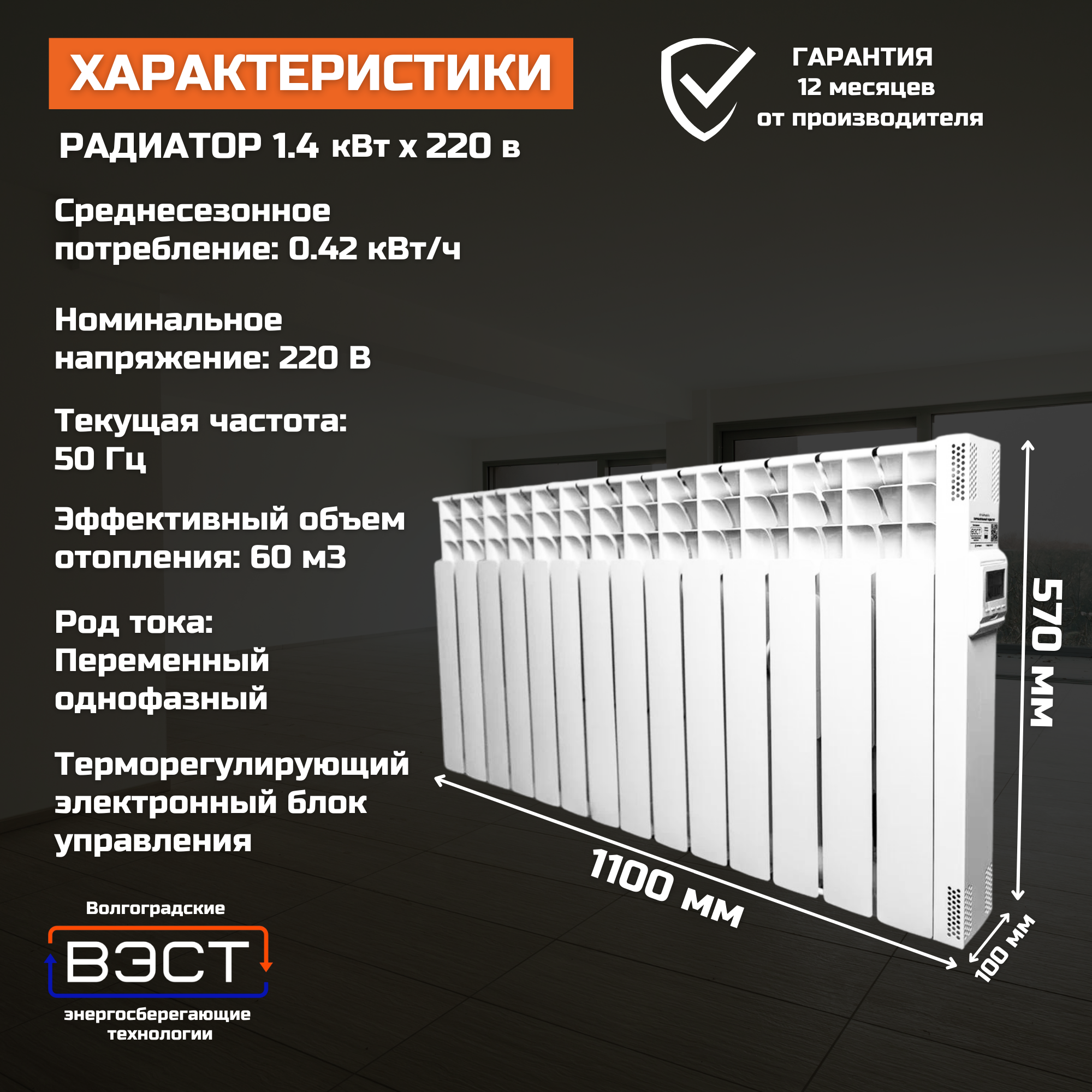 Отзывы на Парокапельный электрический алюминиевый радиатор отопления "вэст" / ПКН 1.4х220 / 14 секций