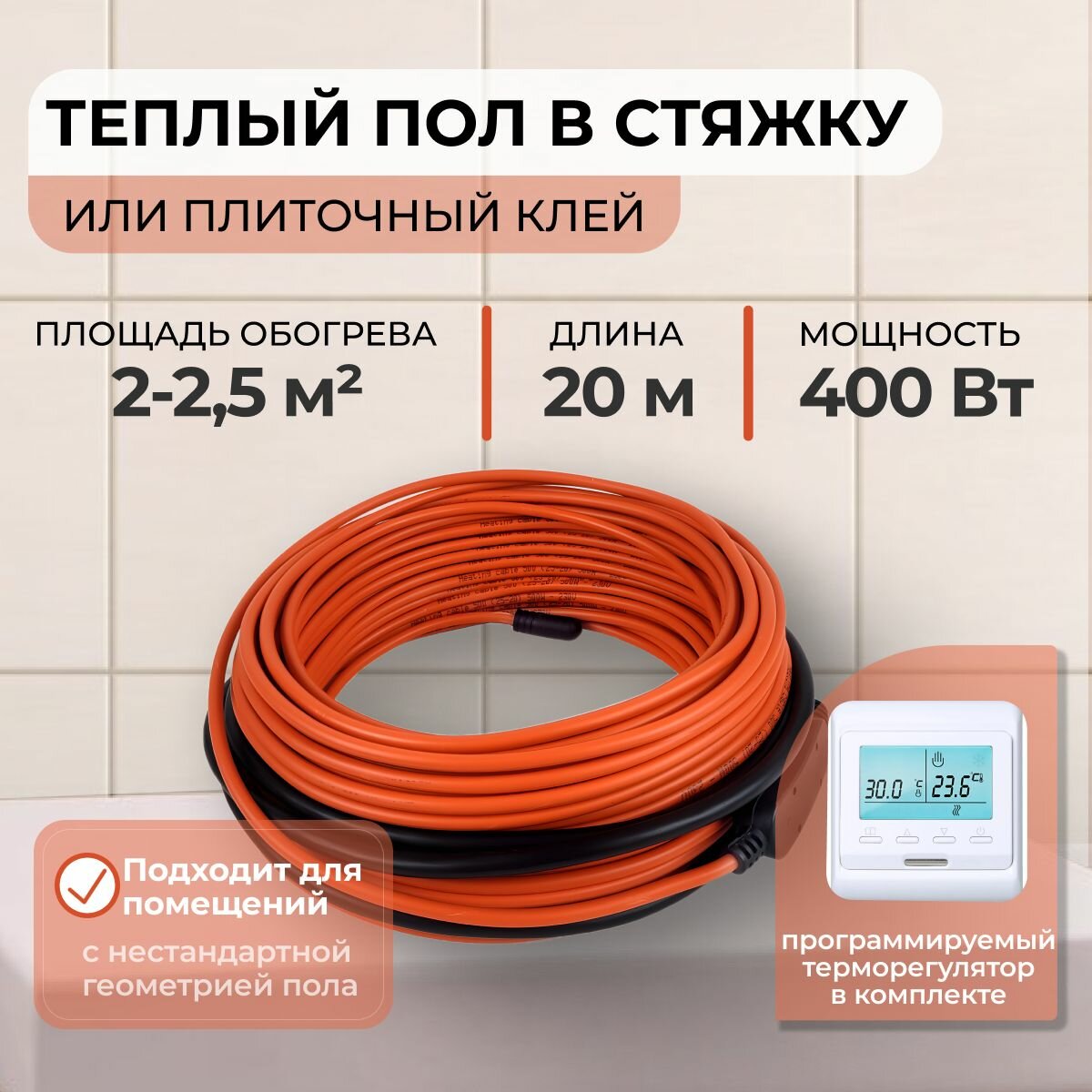 10 цен на Теплый пол В стяжку или Плиточный клей 400Вт (2,0-2,5 м.кв.) с Электронным терморегулятором
