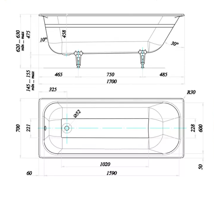 Ванна Эконом Классика 170x70 с ручками, чугун информация: