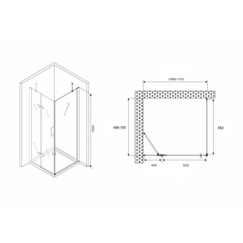 Душевой уголок Abber Zart AG08110-S71, профиль хром, стекло прозрачное 110x70x195