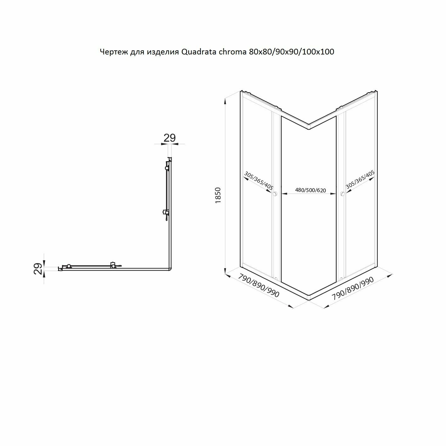 Душевой уголок без поддона Albico Quadrata chroma 80х80, (квадрат) информация: