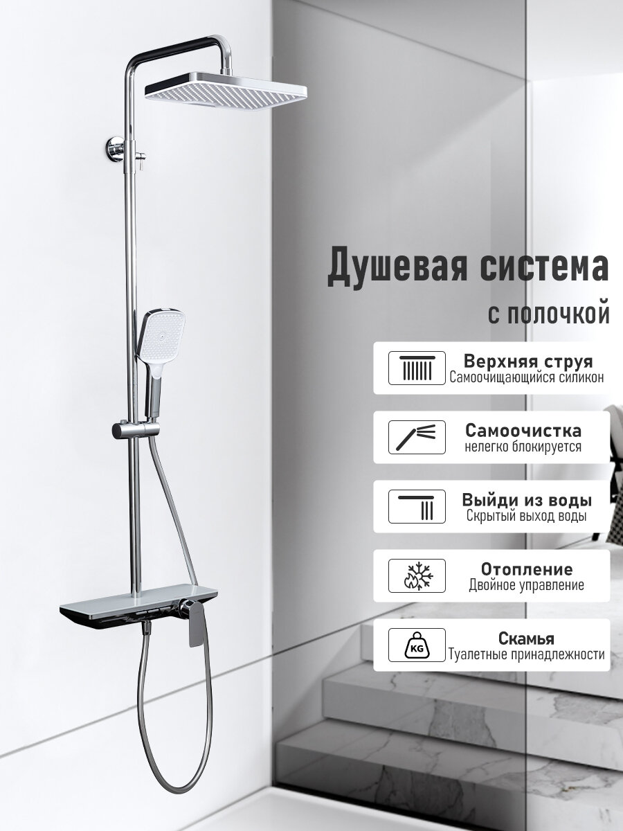 Отзывы на GAPPO Душевой комплект с регулировкой температуры и холода с полочкой хром YG2496-10