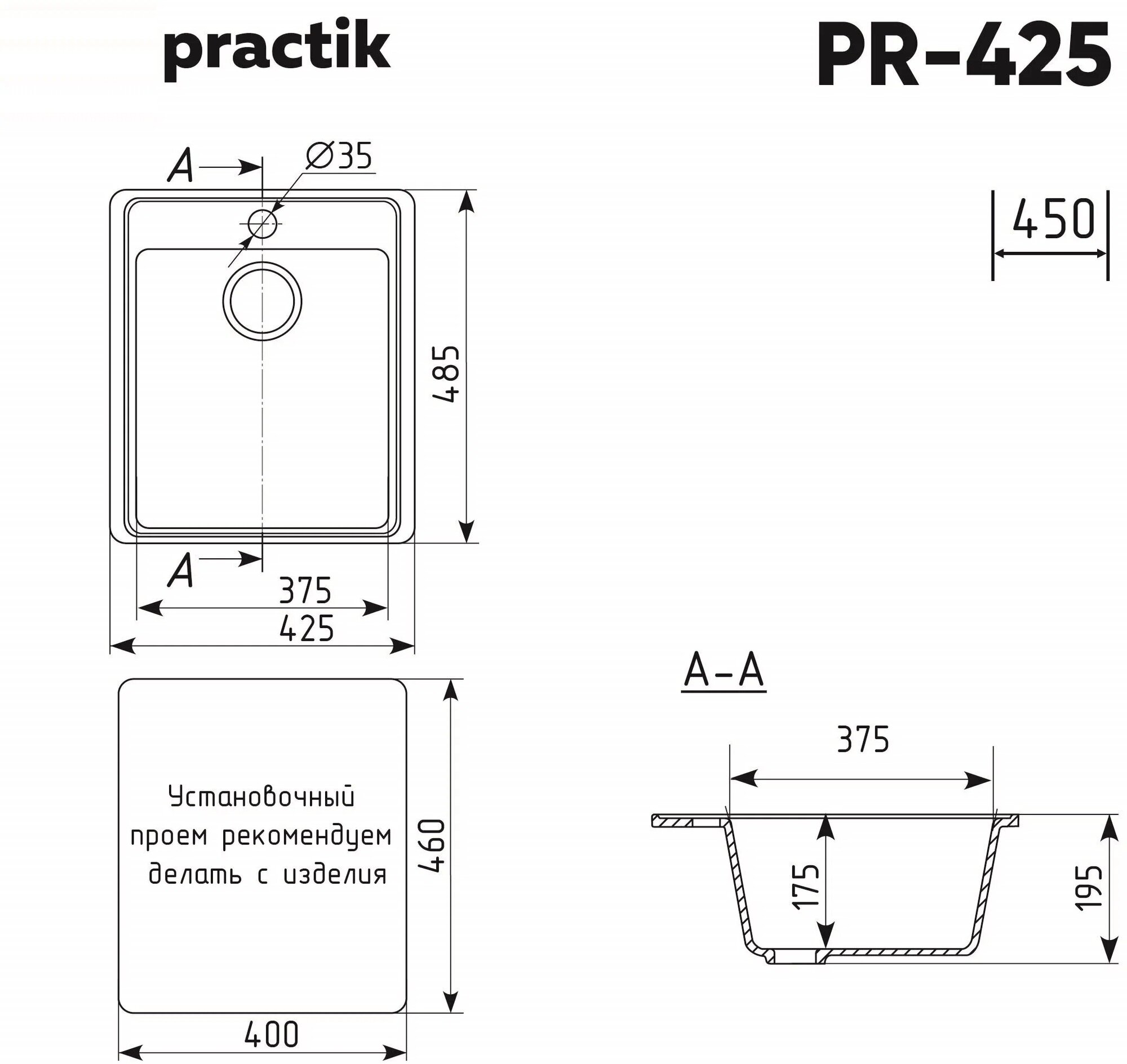 Отзывы на Кухонная мойка из искусственного камня Practik PR-M 425-001 Белый камень 425 х 485 х 195 мм