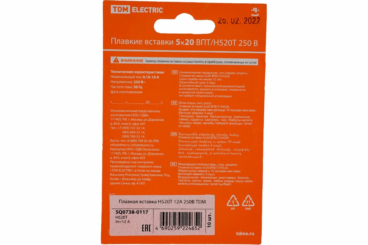 TDM Плавкая вставка Н520Т 12А 250В упак (10 шт.) SQ0738-0117 информация: