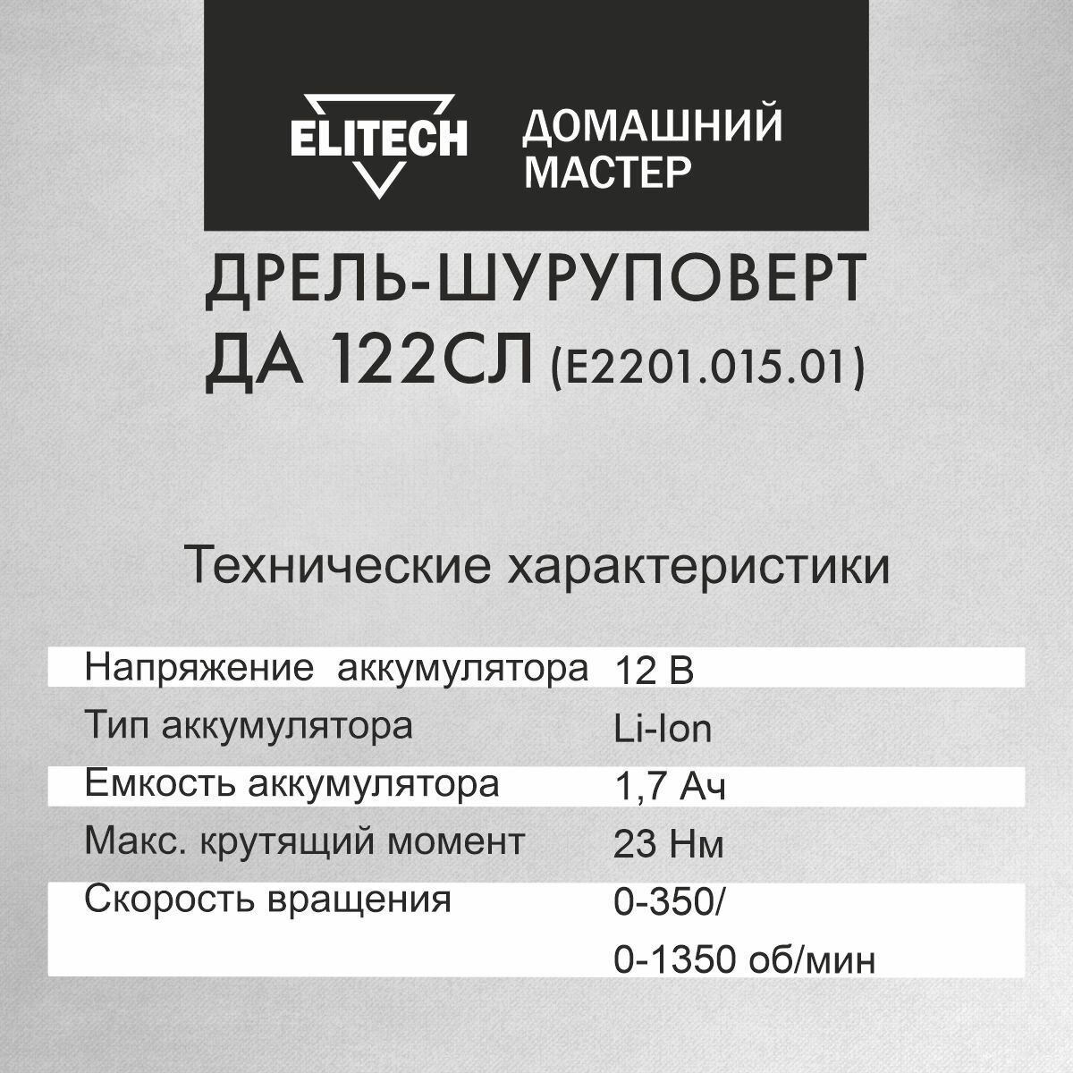 Elitech Дрель аккумуляторная домашний мастер ДА 122СЛ 202413 информация: