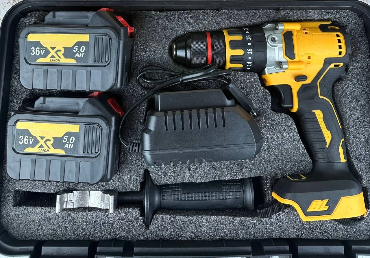 Шуруповерт аккумуляторный бесщеточный ударная дрель-шуруповерт 48 Вт + 2 АКБ в кейсе