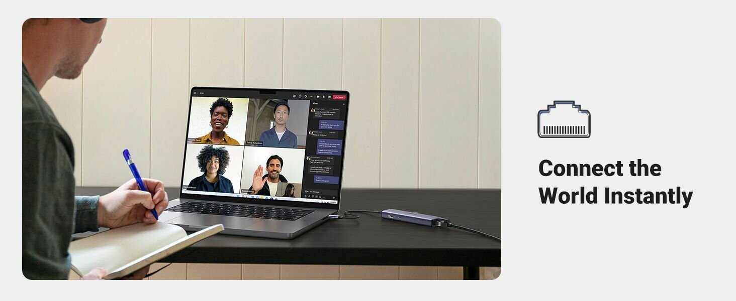 | Дополнительная информация | Вход: USB-C, штекер Выход: 3*USB 3.0 A+HDMI+RJ45 Gigabit+PD Стандарт USB 3.0, скорость передачи до 5 Гбит/с, обратная совместимость USB 2.0/1.1 Разрешение HDMI до 4K при 30 Гц Поддержка сетевого доступа 10/100/1000 Мбит/с С портом питания PD (100 Вт) Алюминиевый корпус |