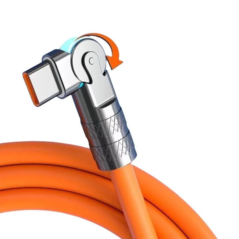 10 цен на Вращающийся кабель на 180 градусов Type-C для зарядки, 1.5 метра, 6 ампер, 120w, индикатор, ремешок, цинк (Оранжевый)