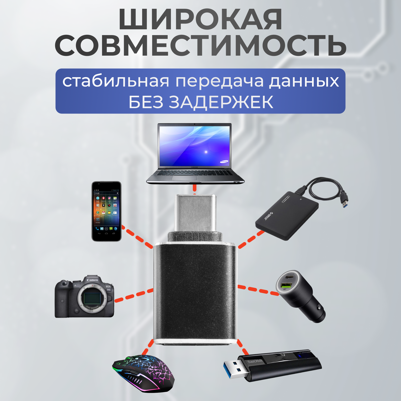 Переходник Type-C на USB 3.0 с поддержкой режима OTG для флешки, смартфона, ноутбука и зарядного устройства информация: