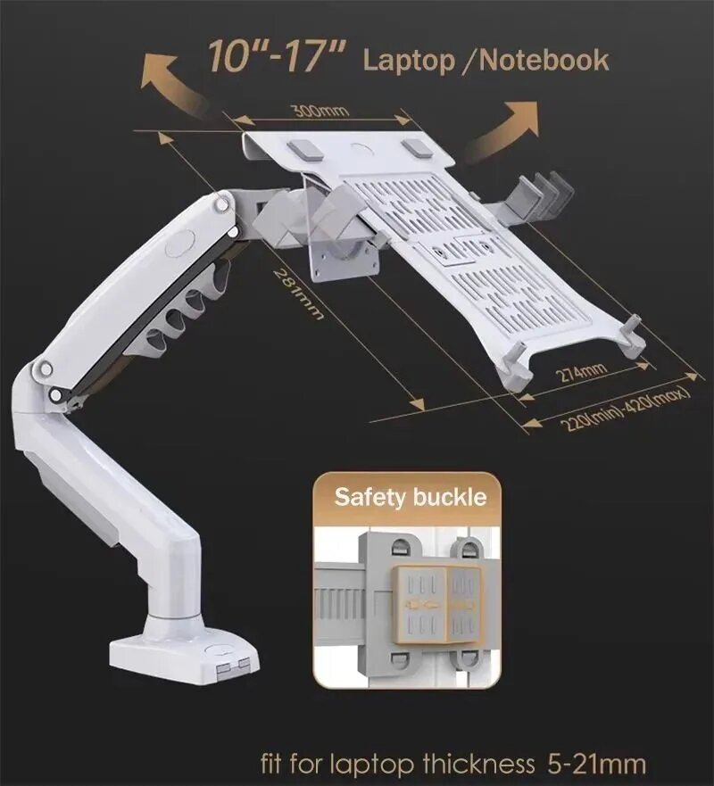 Настольный кронштейн NB North Bayou F80 для монитора 17-30" до 9 кг, с зажимом для ноутбука 10-17" NB FP-2, белый информация: