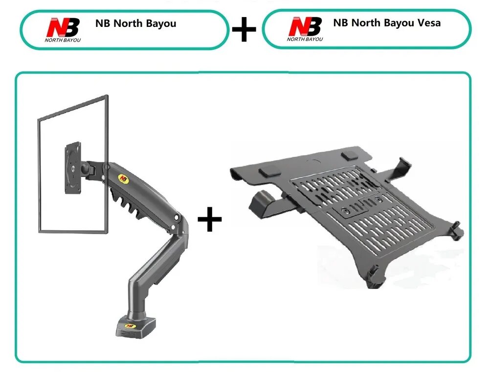 Настольный кронштейн NB North Bayou F80 для монитора 17-30" до 9 кг, с зажимом для ноутбука 10-17" North Bayou FP-2 (F80-FP), черный матовый