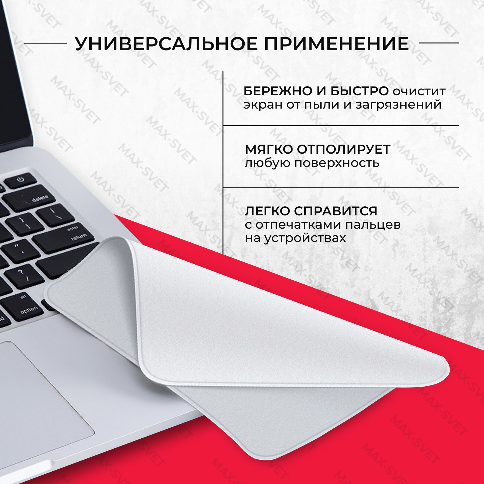 10 цен на Чистящая салфетка S-MAX Apple Polishing Cloth для экрана MacBook и дисплея Iphone (Apple Watch) 2 шт, серая