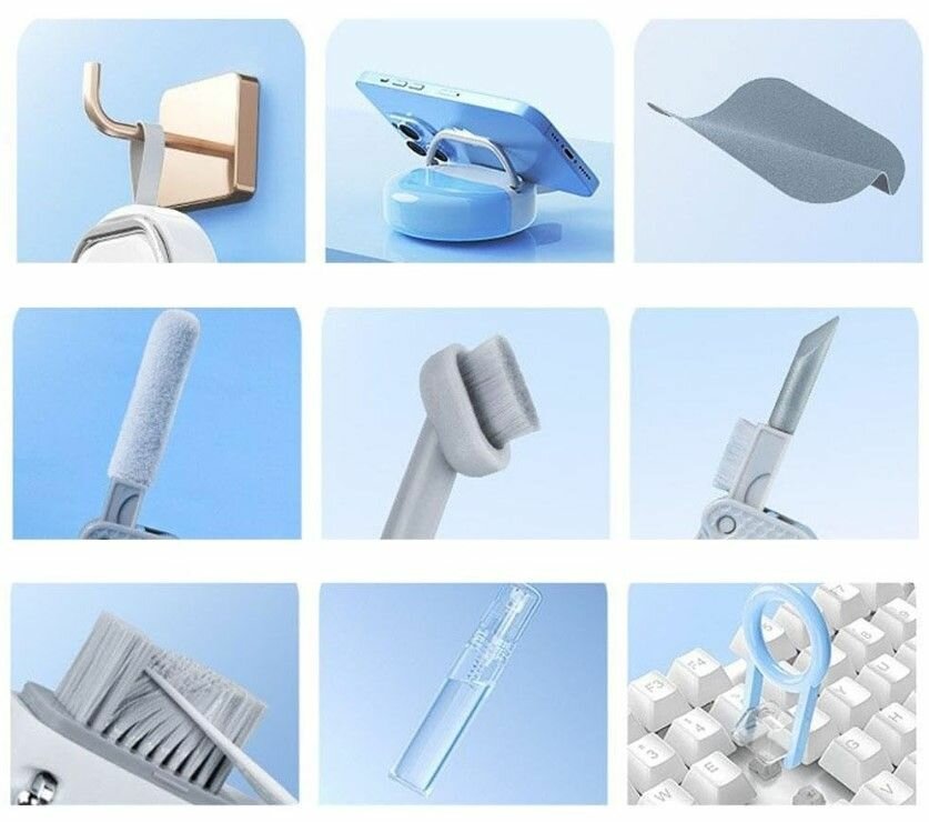 Отзывы на Набор инструментов для чистки гаджетов 8 в 1 / Многофункциональный комплект для очищения наушников, клавиатуры, телефонов и ноутбуков голубой