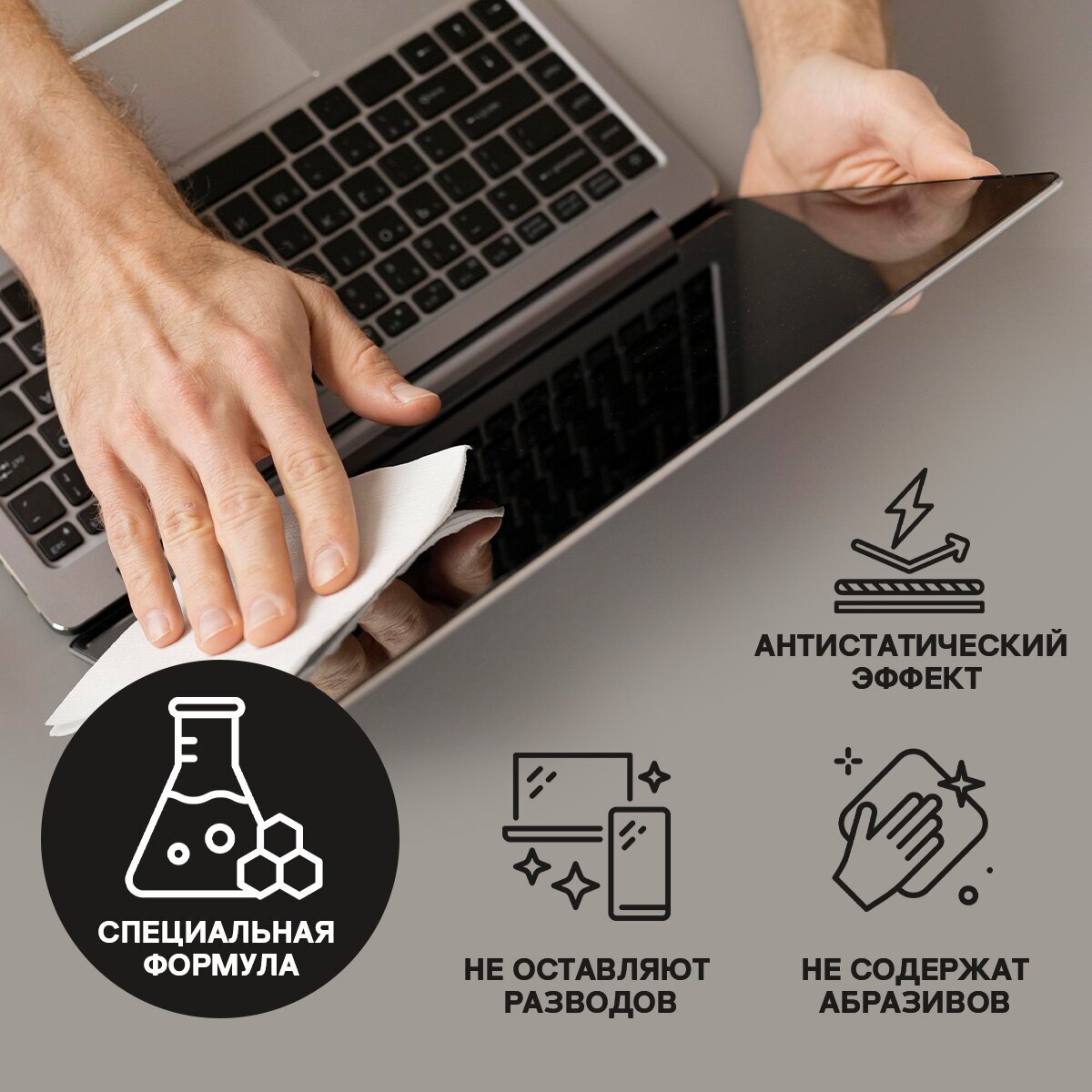 Универсальные влажные салфетки для оргтехники, электроники, смартфонов, экранов, мониторов, оптики, антистатические, антибактериальные, 100шт информация:
