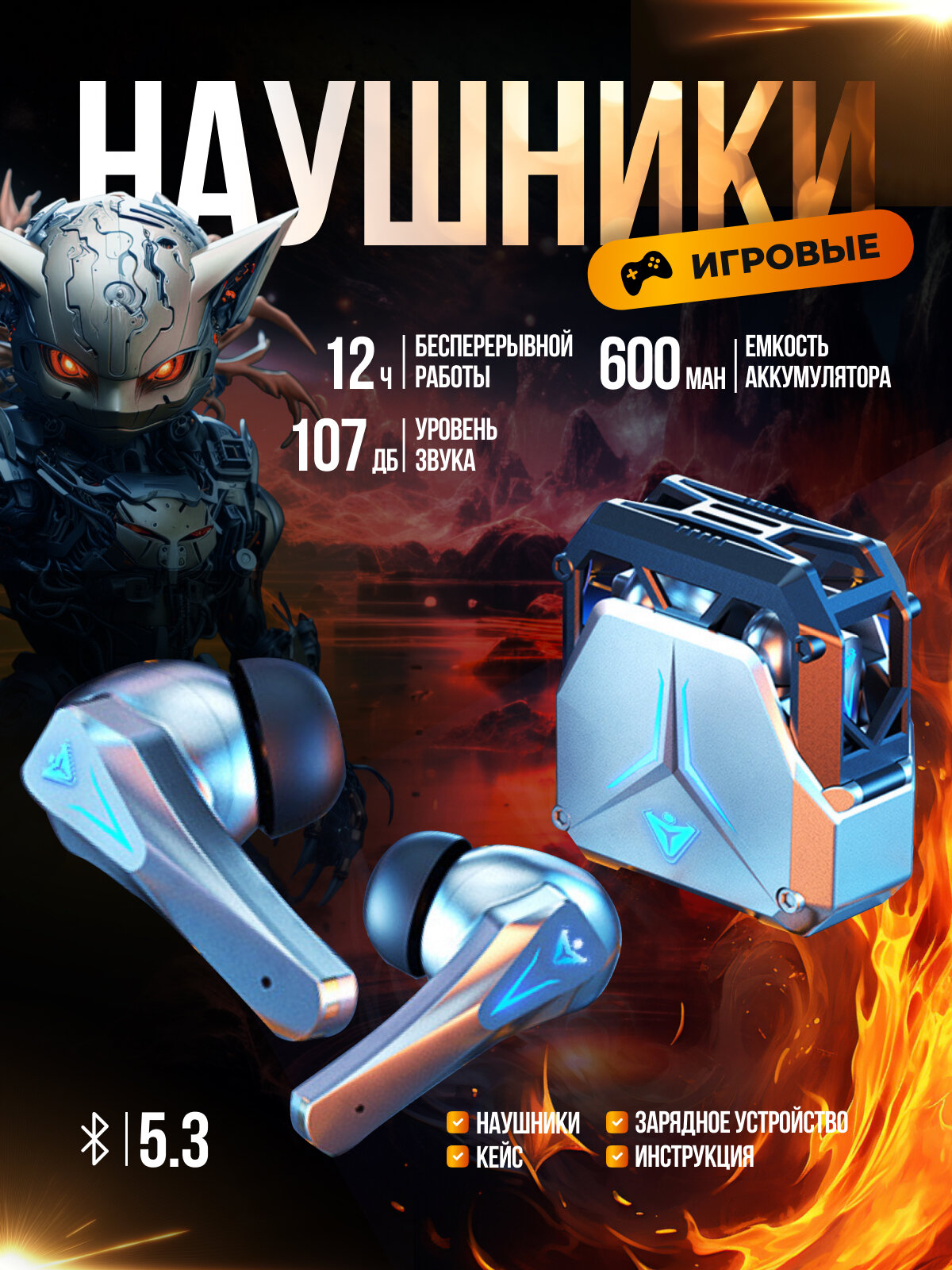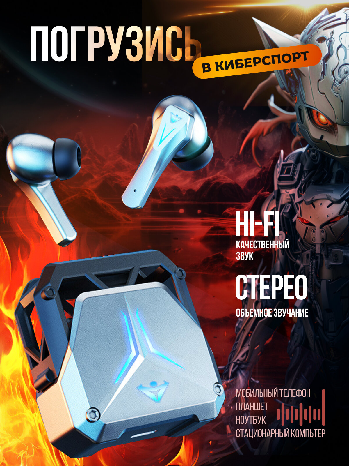 Наушники беспроводные игровые с микрофоном