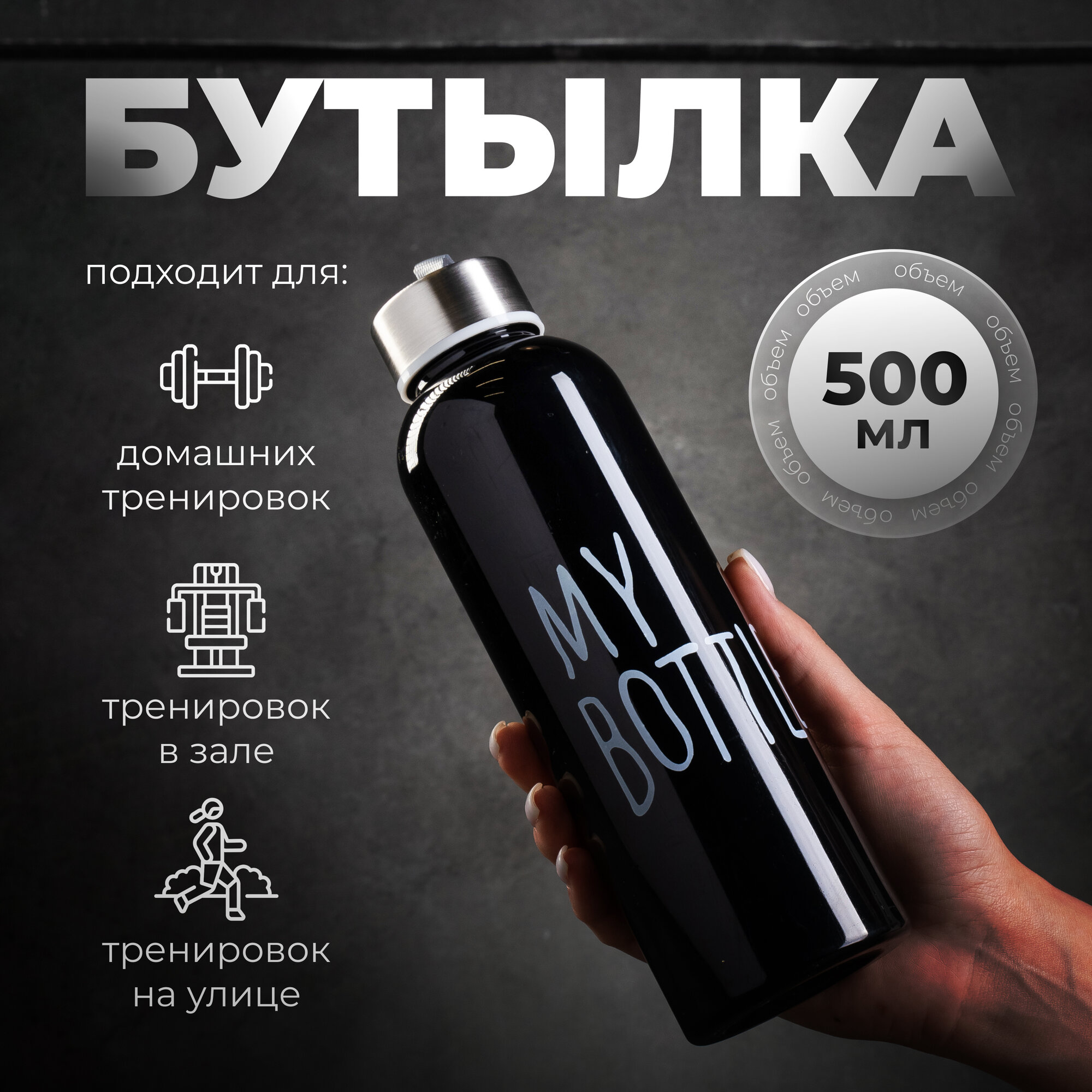 Бутылка для воды, объем 500 мл, черная информация: