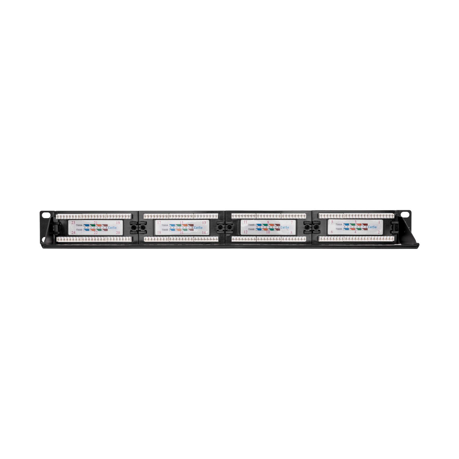 Патч-панель Rexant / коммутационная панель для патч кордов 19", 1U, 24 порта RJ-45, категория 5e, UTP неэкранированная, черная