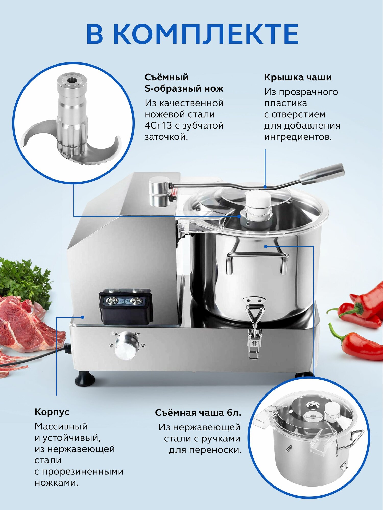 10 цен на Куттер-миксер электрический GASTRORAG HR-6 профессиональный, чаша 6 л, блендер измельчитель кухонный для мяса, овощей, техника для кухни