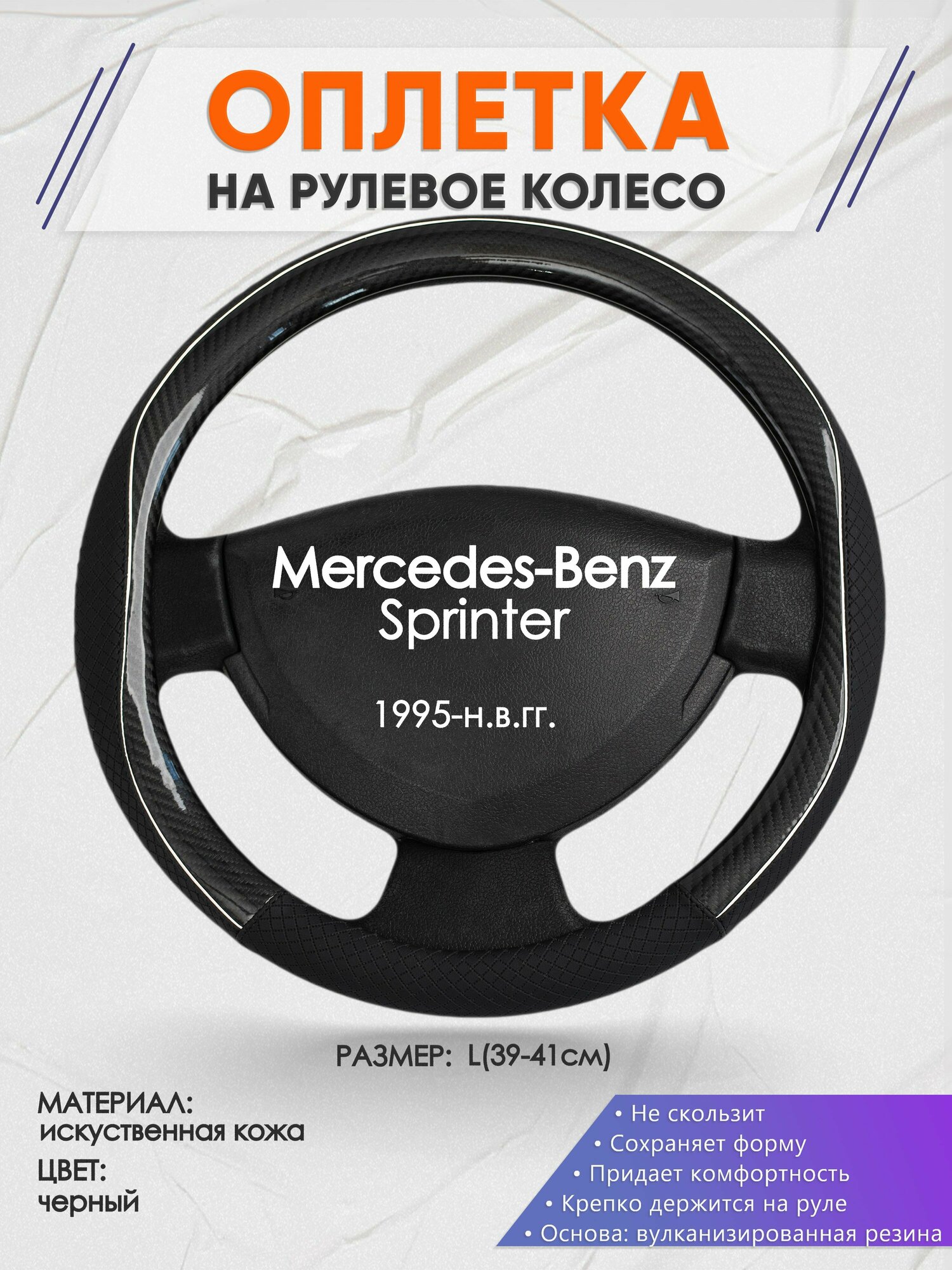 Оплетка на руль для Mercedes-Benz Sprinter(Мерседес Бенц Спринтер) 1995-н. в, L(39-41см), Искусственная кожа 79 1 404 ₽