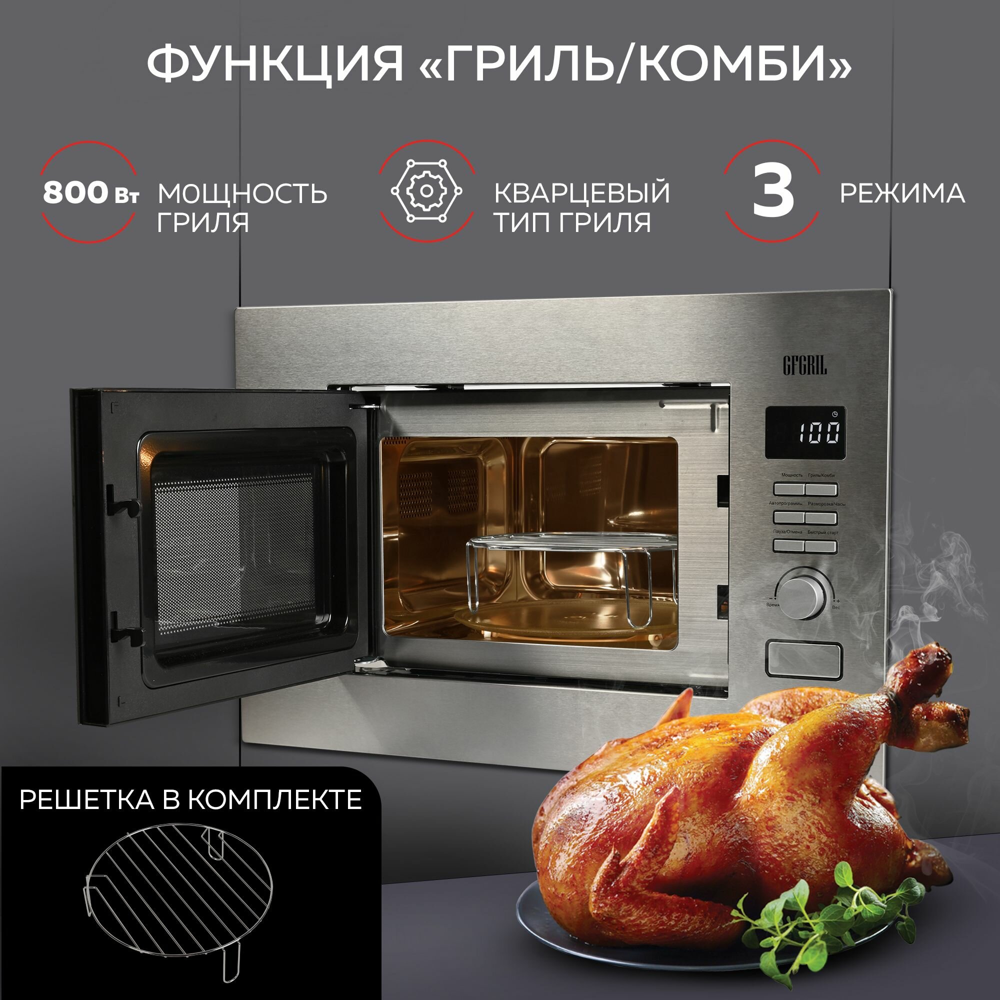 Отзывы на GFGRIL Микроволновая печь встраиваемая GF-MWO2160BI, 21 л, гриль, автопрограммы, 700 Вт, нержавейка
