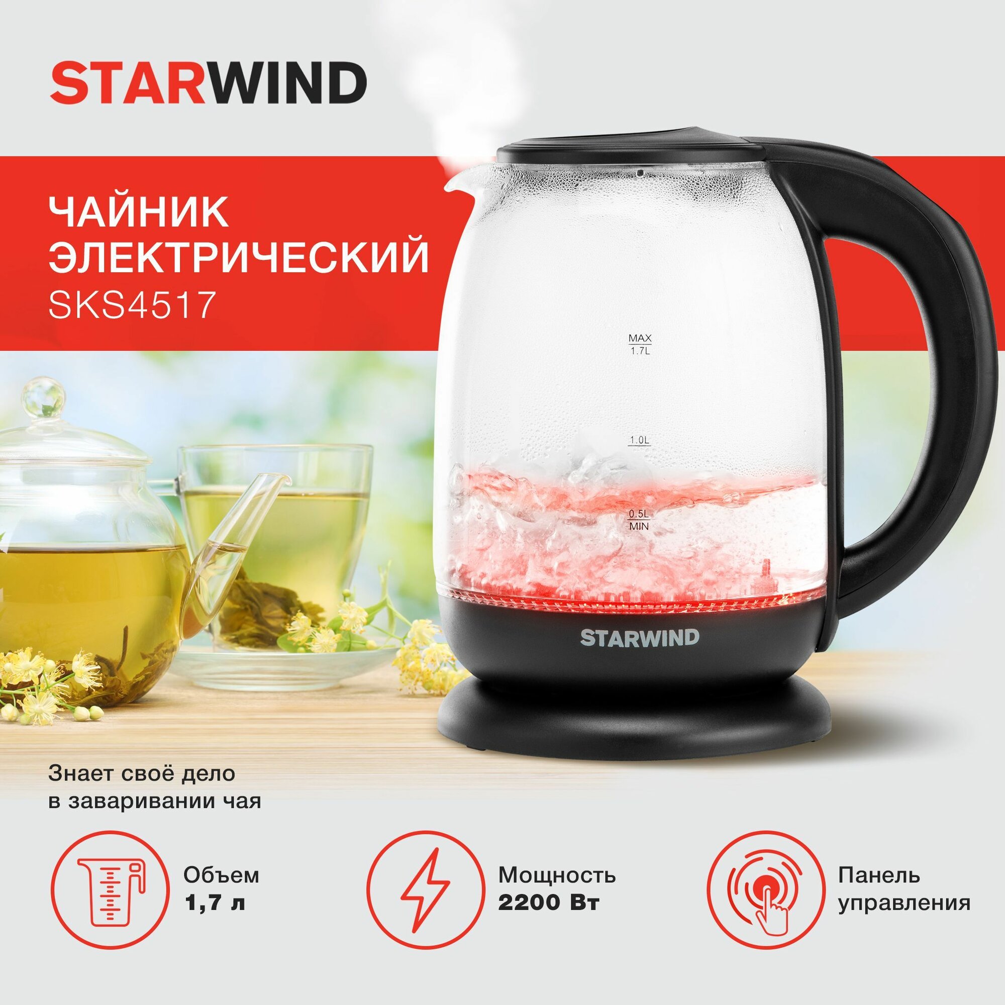 Чайник электрический StarWind SKS4517, 2200Вт, черный информация: