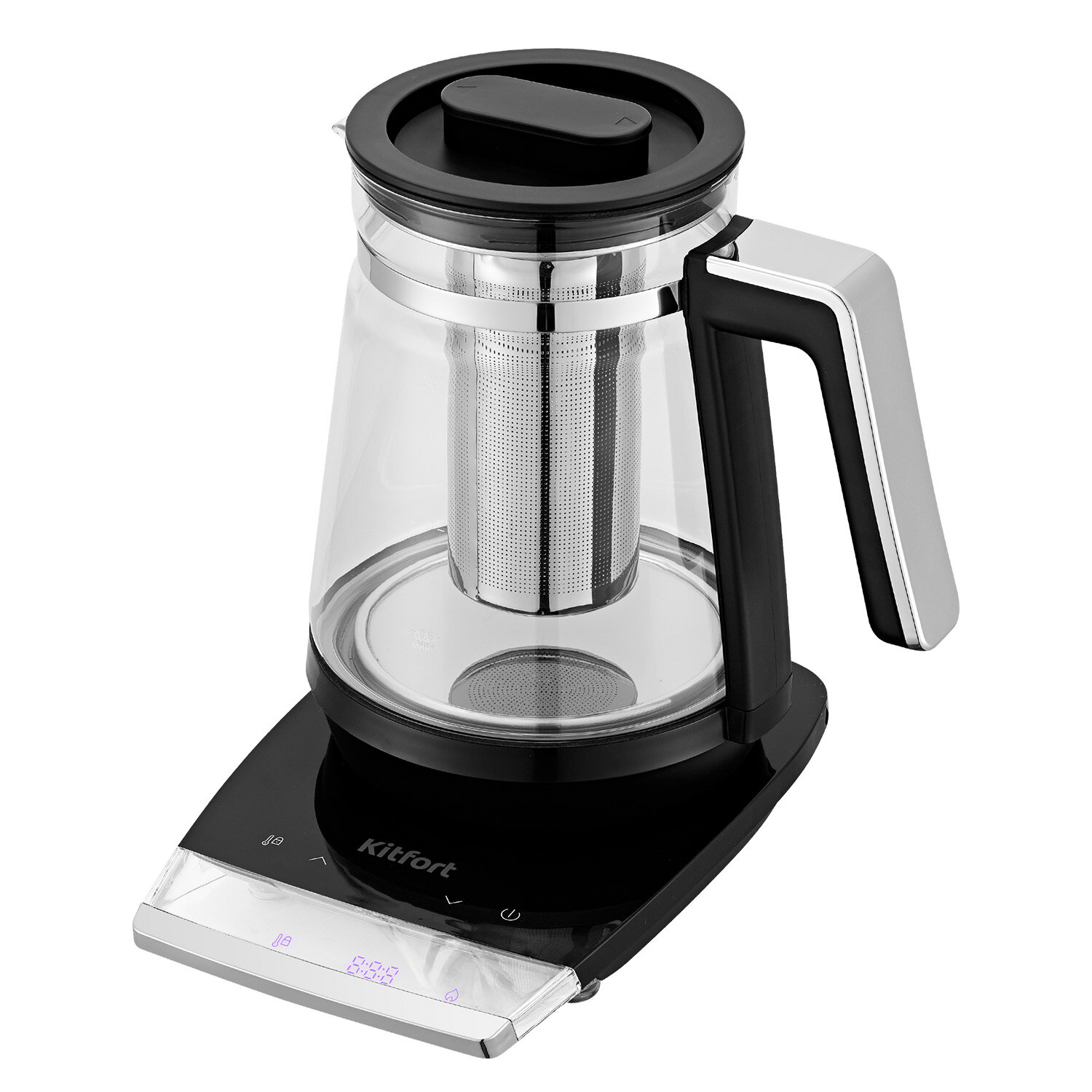 10 цен на Чайник электрический Kitfort КТ-6187 1.5л. 2150Вт черный/серебристый корпус: стекло/металл/пластик