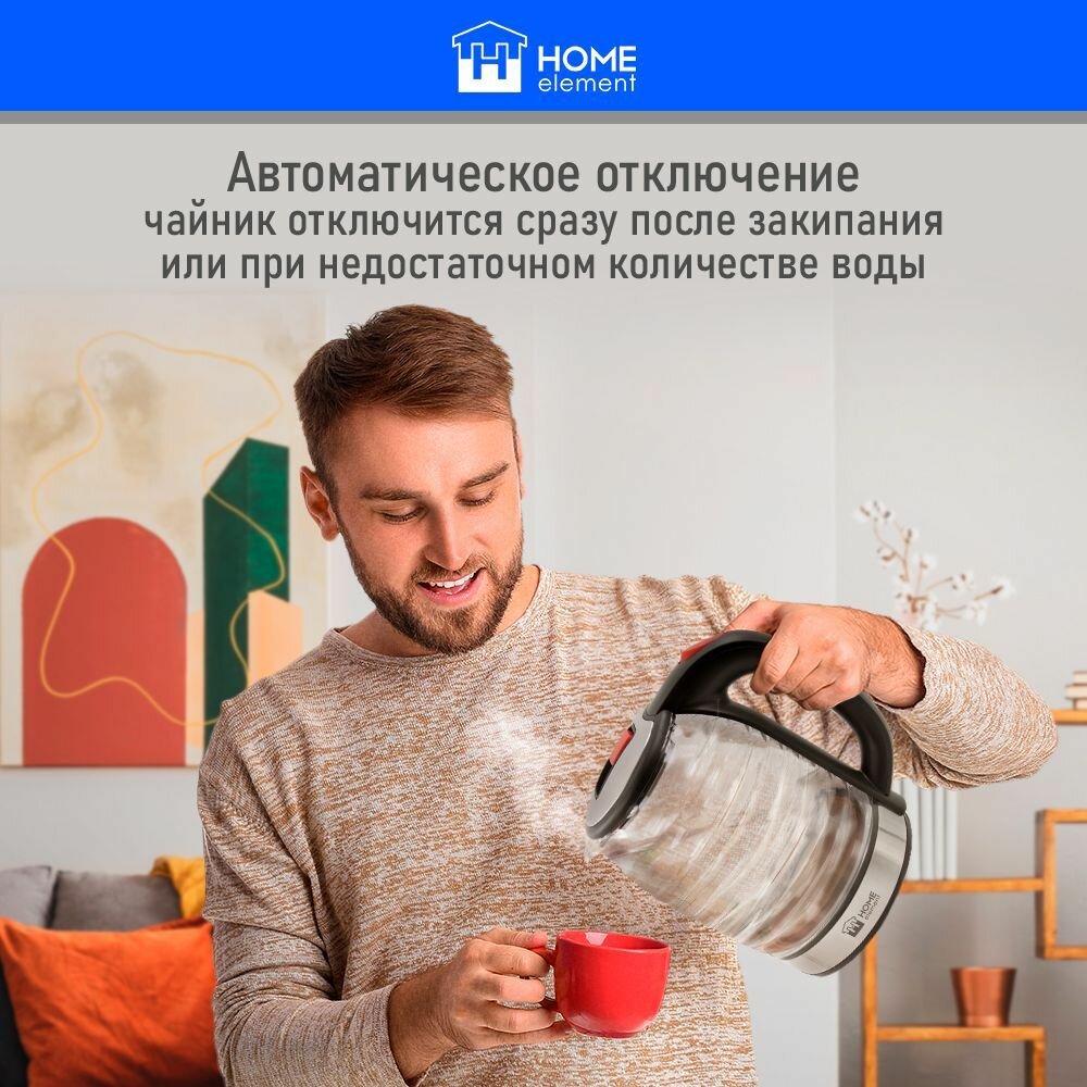 Чайник электрический HOME ELEMENT HE-KT2306 стеклянный 2 Л с подсветкой, красный рубин информация: