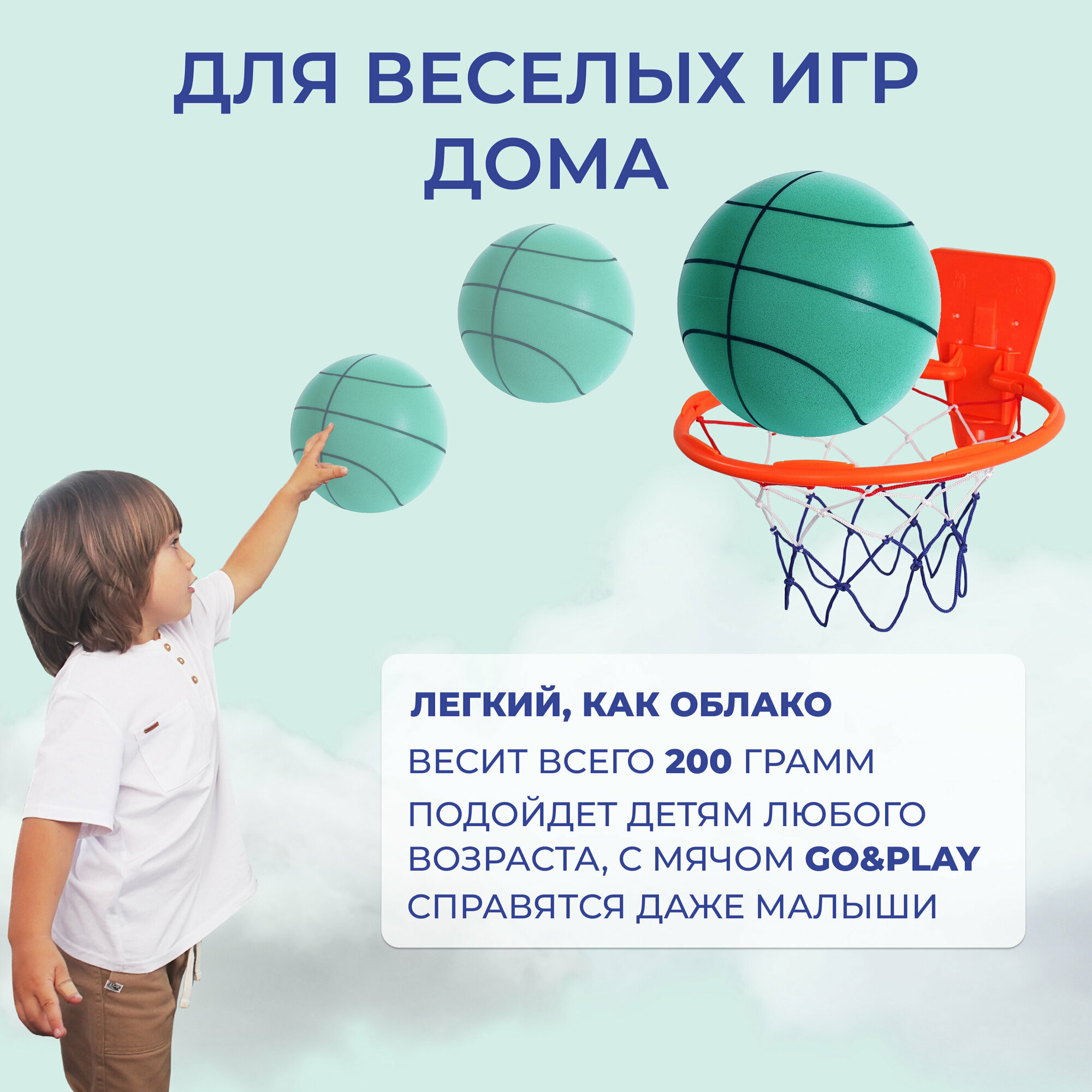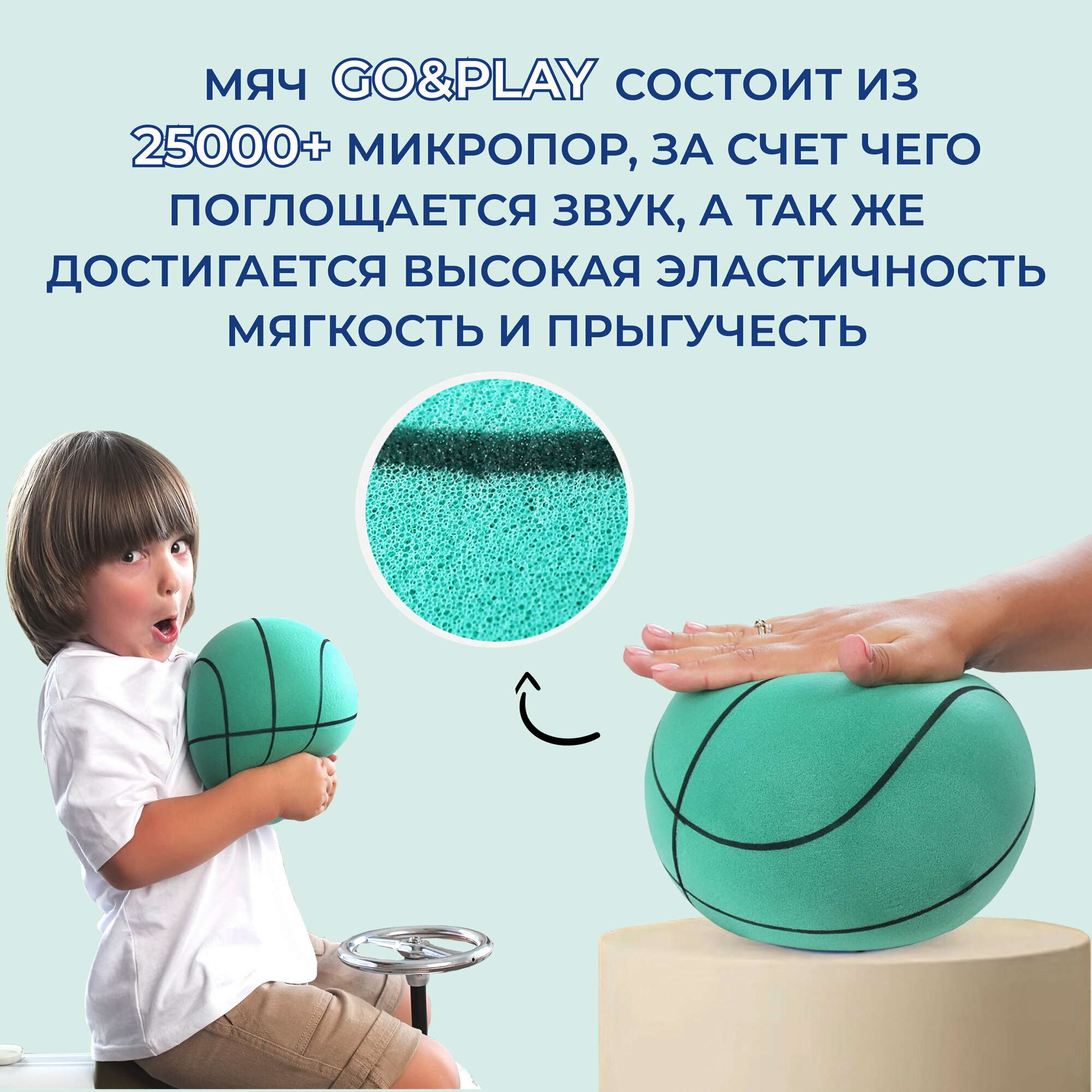 GO&PLAY Бесшумный баскетбольный мяч из пеноматериала для детей 5 размер, голубой Тиффани 1 475 ₽