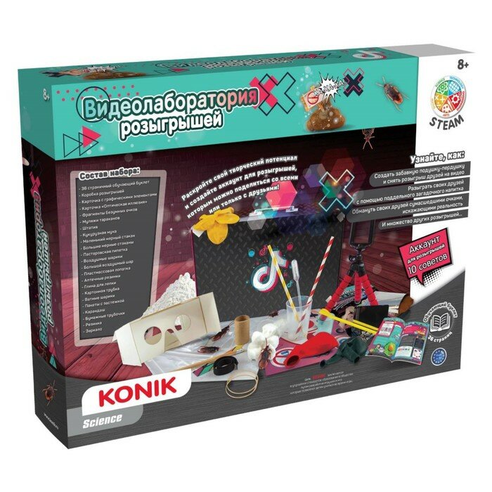 Набор для опытов и исследований "Видеолаборатория розыгрышей" KONIK Science для детей от 8 лет