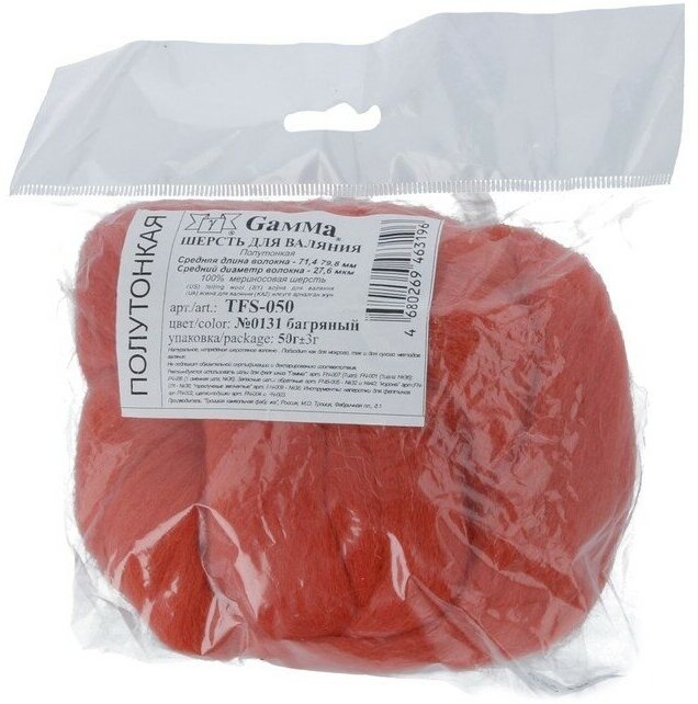 Отзывы на Шерсть для валяния "Gamma" TFS-050 100% полутонкая шерсть 50 г №0131 багряный