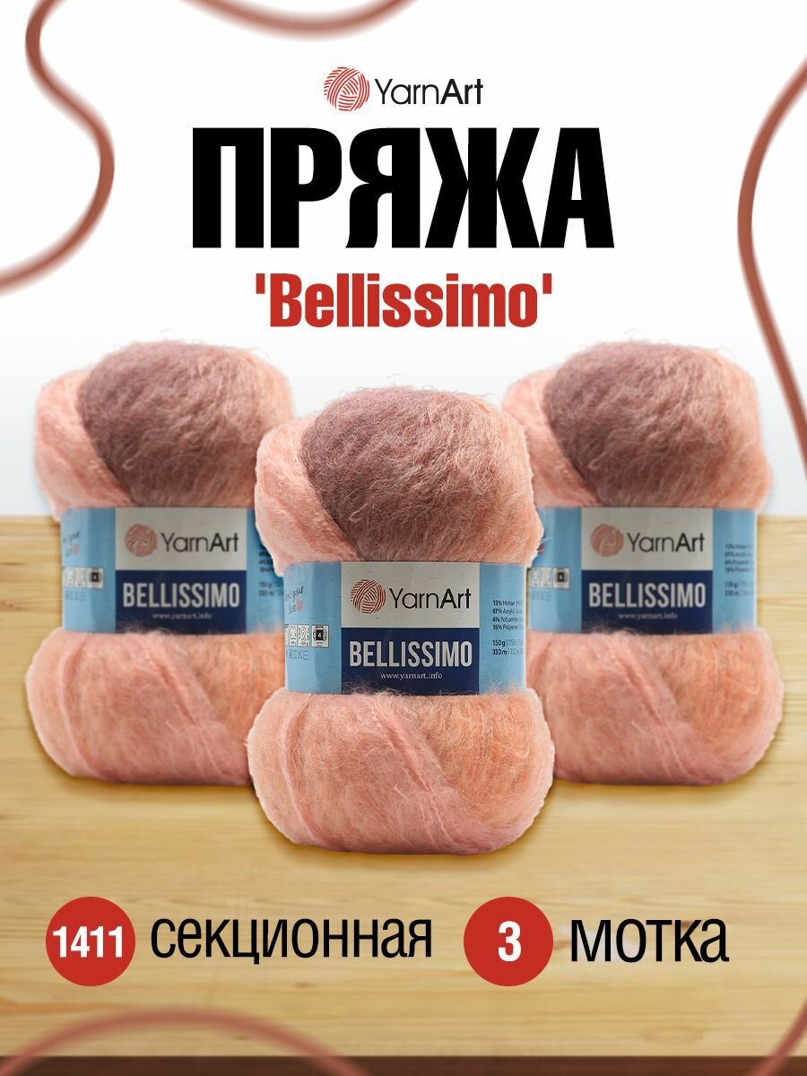 Пряжа для вязания YarnArt 'Bellissimo', 150г, 330м (13% мохер, 67% акрил, 4% полиамид, 16% полиэстер) (1411), 3 мотка информация:
