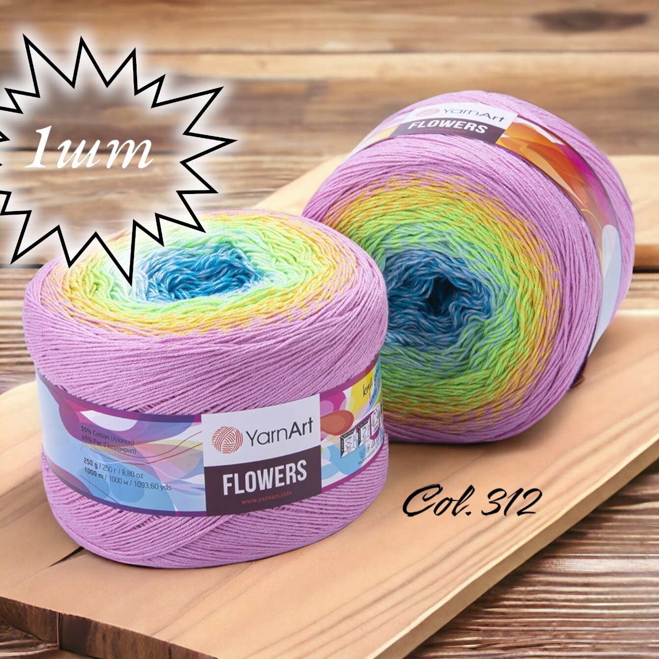 Пряжа YarnArt Flowers радуга (277), 55%хлопок/45%акрил, 1000м, 250г, 1шт