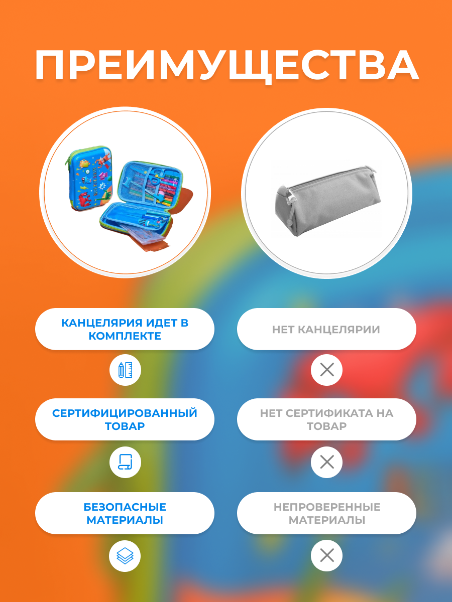 | Дополнительная информация | Яркий пенал из прочного материала |