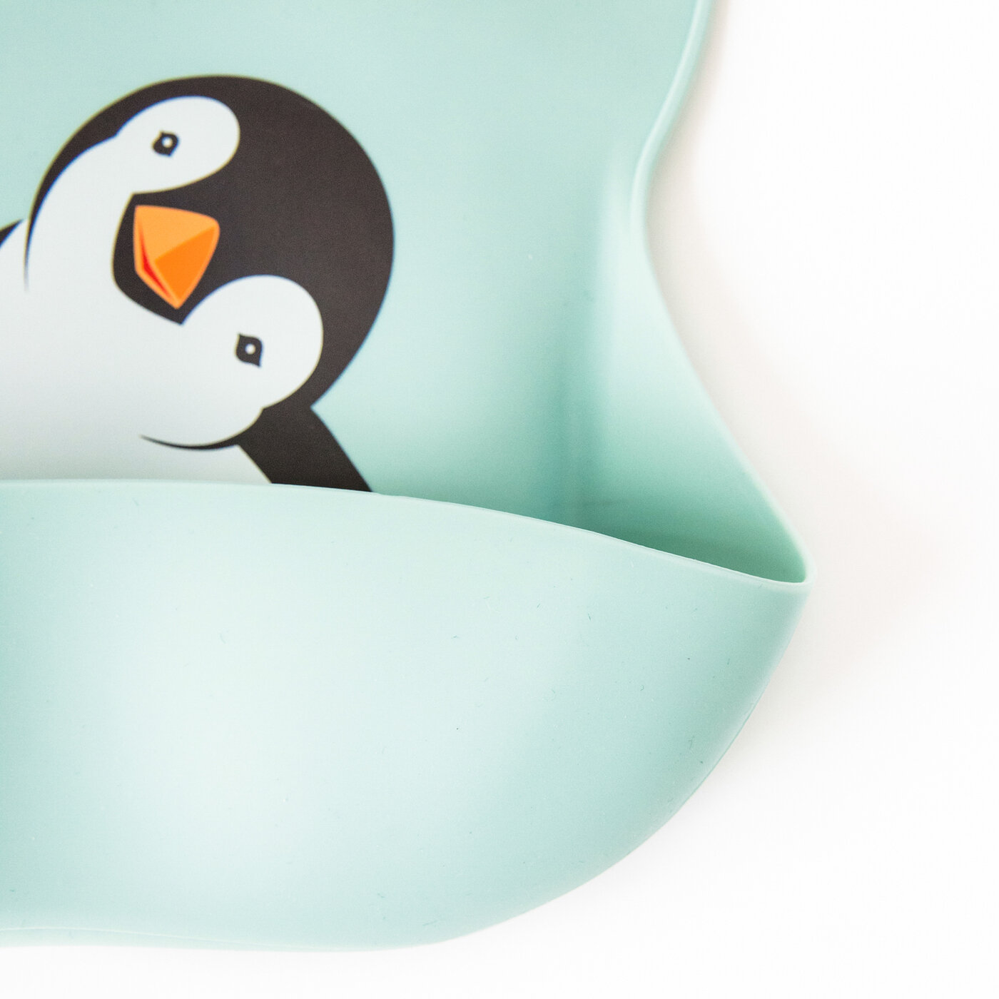 Нагрудник для кормления детский силиконовый с кармашком, Baby Nice, 21х28, "Пингвиненок", мятный информация: