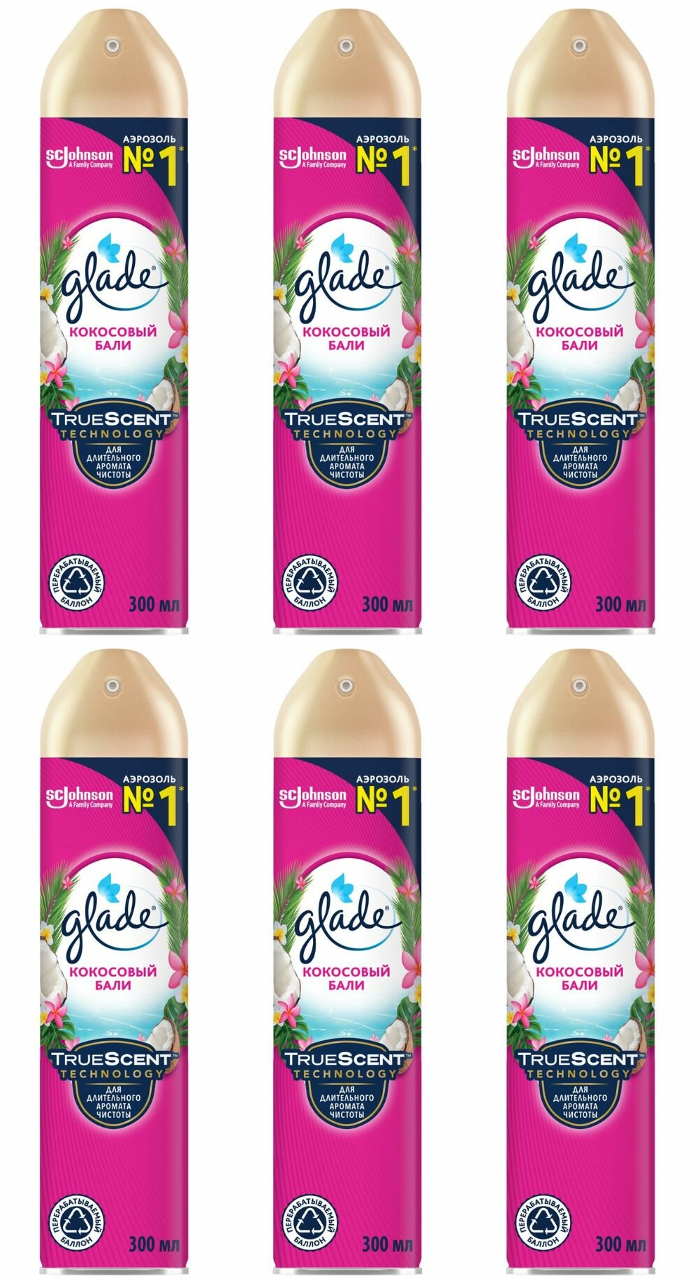 Комплект 6 штук, Освежитель воздуха Glade Аэрозоль Кокосовый Бали, 300 мл информация: