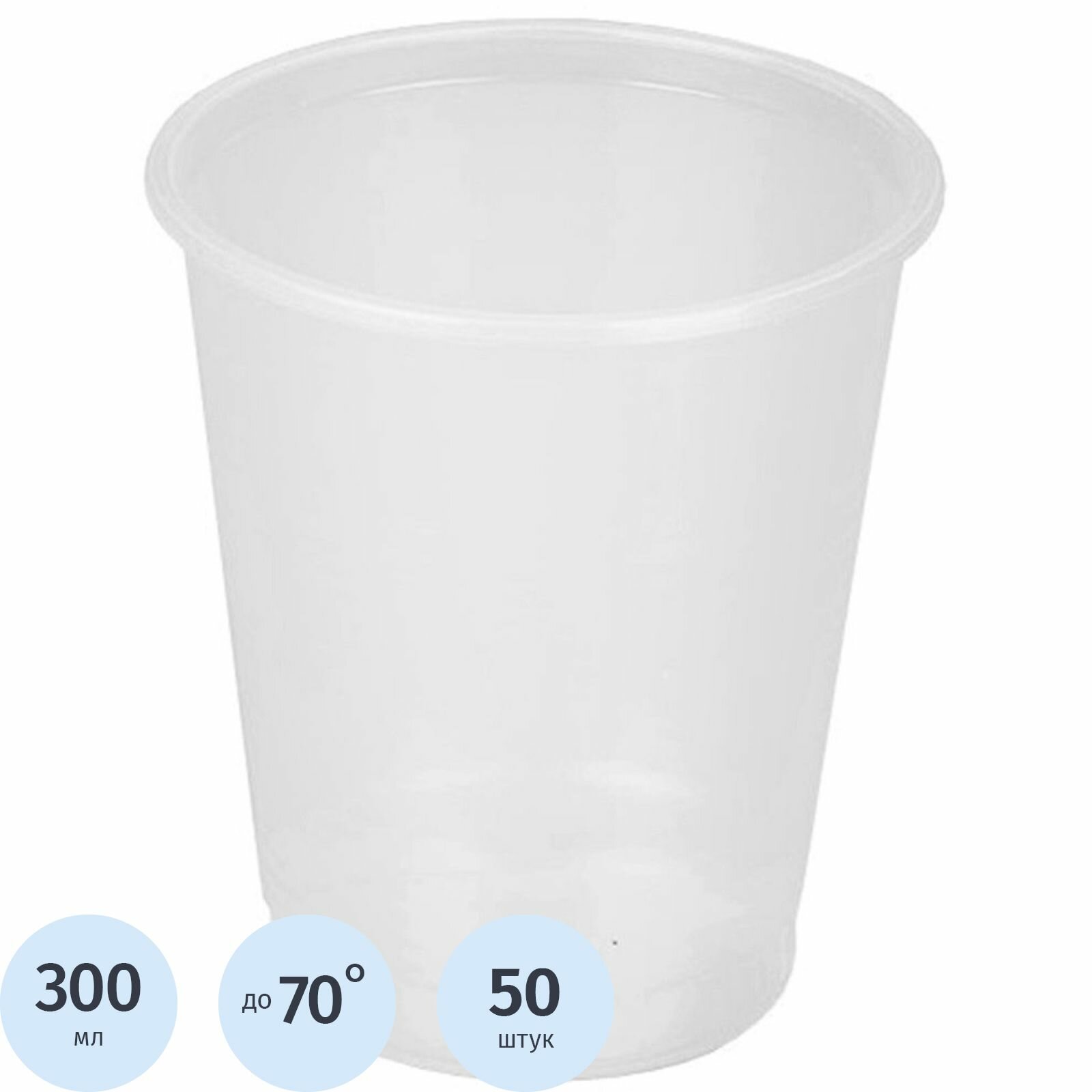 Стаканы одноразовые пластиковые Комус, 300 мл, 50 штук, прозрачные информация: