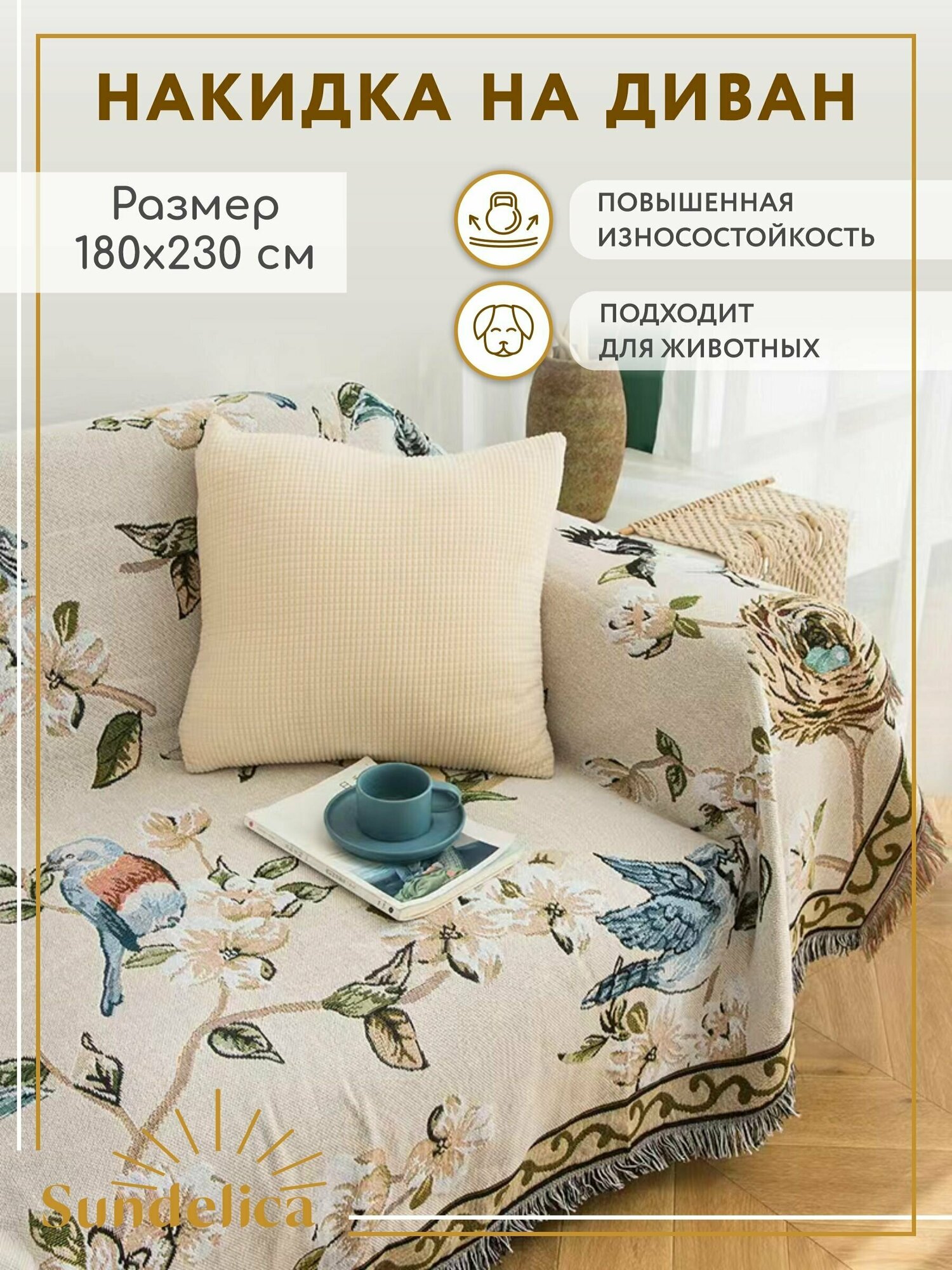 Покрывало, накидка на диван Sundelica 180*230 Птицы информация: